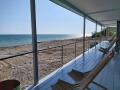 Амшин расположен в 30 метрах от моря, окна всех номеров выходят на море. Есть навес, много лежаков. Очень