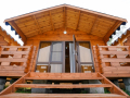 Уютные домики из соснового дерева с хорошей мебелью и всеми удобствами для комфортного проживания: кондиционер, холодильник, телевизор и Wi-Fi.