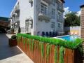 Бассейн с двумя уровнями глубины, предназначенный для детей и взрослых, радует гостей. Неподалеку обустроена отличная мангальная зона, а для любителей бани есть соответствующие удобства. Весь комплекс устроен так, чтобы отдохнувший от городской суеты человек мог получить всё необходимое для полноценного отдыха. До моря идти всего 10 минут, что стало для нас приятной прогулкой мимо магазинчиков с местными деликатесами и сувенирными лавками. Мы выбрали студию с кухней и балконом, и не прогадали – номер оказался очень комфортабельным. Владельцы отеля продумали каждую деталь для создания уютной обстановки. Персонал отеля отличается отзывчивостью и всегда готов помочь и подсказать. В общем, наш отпуск оставил только положительные воспоминания, и мы уже с нетерпением ждем следующего отдыха. |