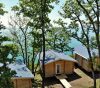 Выход к морю на пляже расположен под железнодорожным мостом. Вход в воду удобный, вода у берега чистая и теплая. На территории есть кафе, где можно отведать местную кухню из морепродуктов и освежиться прохладительными напитками. На пляже всегда много отдыхающих, но большая территория позволяет не чувствовать себя в месте большого скопления людей.