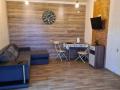 Категорически не советую. Студия с кухней расположена на первом этаже здания, стоящего посреди двора, окруженного чужими ( не хозяйскими )частными домами, т.е. ни какого дворика с мангальной зоной нет- мангал стоит в метрах 30, возле чужего частного дома. Чтобы попасть во двор ( место между частными домами) и оставить там машину ( заявлено как парковка) необходимо проехать и пройти мимо пьяной толпы соседей, которые навязываются знакомится. Вечером вообще будет страшно выйти. Когда заселились оплатила по глупости сразу всю сумму за две ночи. Осмотревшись на месте, (пробыли 5 мин, даже вещи не занесли), попросила вернуть деньги т.к. решили съехать, хозяин отказался возвращать. Еле вернул за сутки, еще и нахамил сказал какая цена, такой и сервис!!!