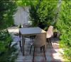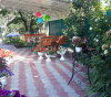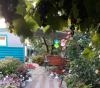 В скульптурной композиции актриса сидит на деревянном крыльце и смотрит вдаль. У ее ног стоит корзина с фруктами.
