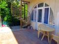 Отдыхали втроем и еще с маленькой собачкой, очень все понравилось. Приняли как родных, чувствовали себя, как дома!Комната уютная, туалет, ванна, горячая вода. Телевизор в номере. Есть летняя кухня, можно было и приготовить себе. Кафе прямо тут же. Магазин продукты и овощи все в этом же доме. Территория закрыта от главного шоссе, ни шума. Рядом пансионат, анимация. вечером танцы. Соседи все замечательные.Море рядом. идти минут 5-7. Рекомендую всем!