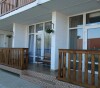 Фото веранды. Есть детские стульчики, игровой домик и две скамейки-качели.