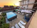 Отель понравился очень!!!! Наш корпус был прямо у самого моря, всего полминуты и уже на пляже. Ночью звуки прибоя и запах моря просто восхитительны. Администраторы очень приветливые, горничные профессионалы своего дела. Регулярно меняли полотенца и белье, номер всегда был в идеальном порядке. Всё тут чисто и удобно. Насчет бассейна, мы так и не успели поплавать, он находился чуть дальше от моря, рядом с основным зданием, но это больше предпочтение, кому что нравится, а нам было достаточно моря. Рядом магазины Пятёрочка, Магнит, минирынок со всем от овощей и фруктов до пляжной одежды и сувениров. Также рядом парк аттракционов и дельфинарий. И, кстати, у ресепшена есть круглосуточный продуктовый магазин. Очень надеемся вернуться сюда снова.