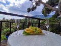 Очень красивый вид с терассы из окна, в номере все есть для жизни. Дорога до отеля немного неблагоустроенная: гравийка с поворотами в гору. В остальном все хорошо.