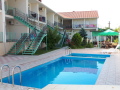 Преимущества: отличный большой теплый бассейн, который открыт круглосуточно. Территория чистая, ухоженная. На территории есть беседки для больших компаний, где можно собраться вечером и пожарить шашлык. Тихое место, вдали от шумных улиц. До пляжа пешком около 30 минут и минут 5-7 на машине.