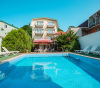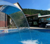 Центральный пляж Новомихайловского имеет длину 800 метров, в ширину протянулся почти на 35 - 40 метров. Дно моря здесь очень ровное, поначалу море мелкое, что привлекает семьи с маленькими детьми, которые будут здесь в полной безопасности. Дно моря постепенно понижается. Побережье покрыто галькой и песком, поэтому пляж одинаково привлекателен и для тех, кто любит песок, и для тех, кто предпочитает гальку. Пляж полностью оборудован, на нём есть всё для полноценного отдыха: прокат скутеров, катамаранов, катание на бананах и иных водных приспособлениях. Вдоль пляжа тянется красивая набережная, на которой находятся сувенирные лавки, кафе, ночные дискотеки, развлекательные центры, площадки аттракционов. В 2017 году центральному пляжу курорта присвоена 1-я категория качества.