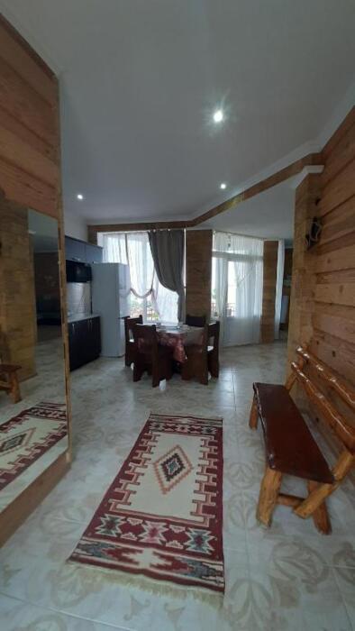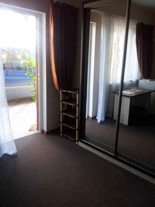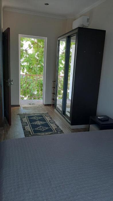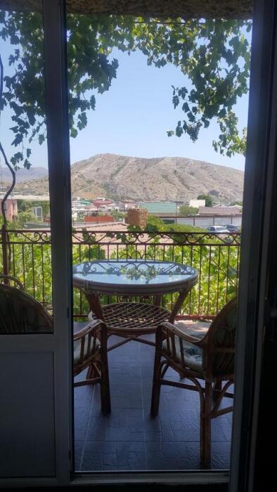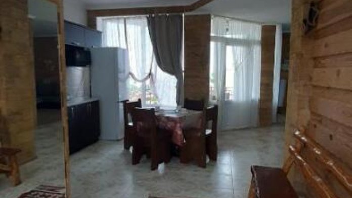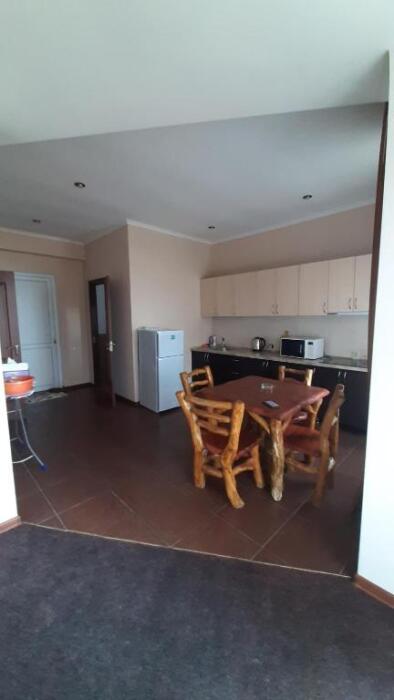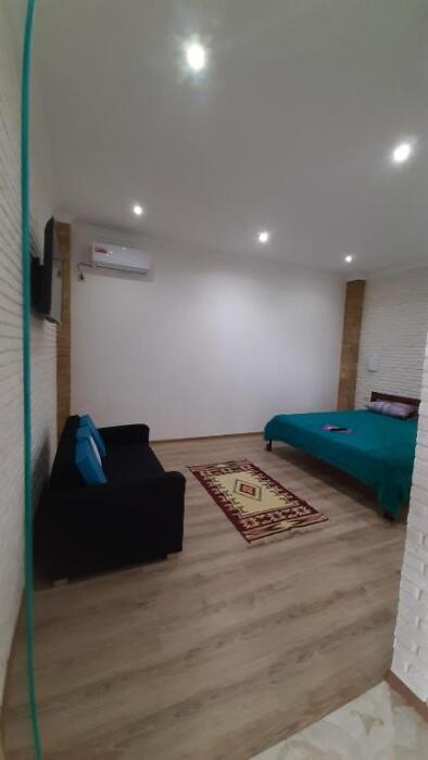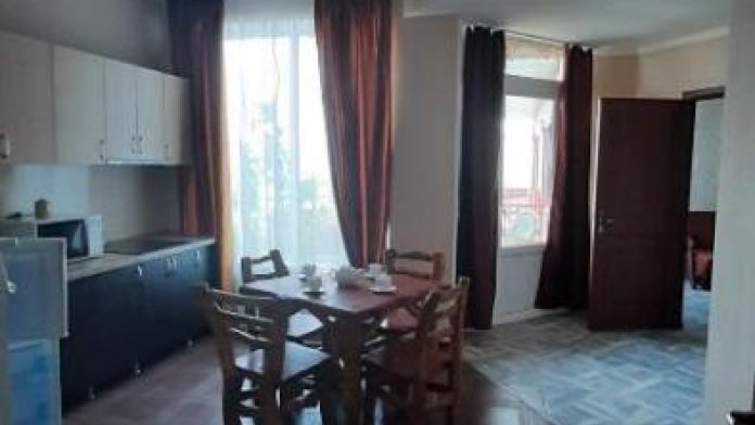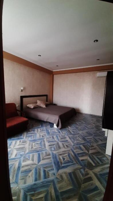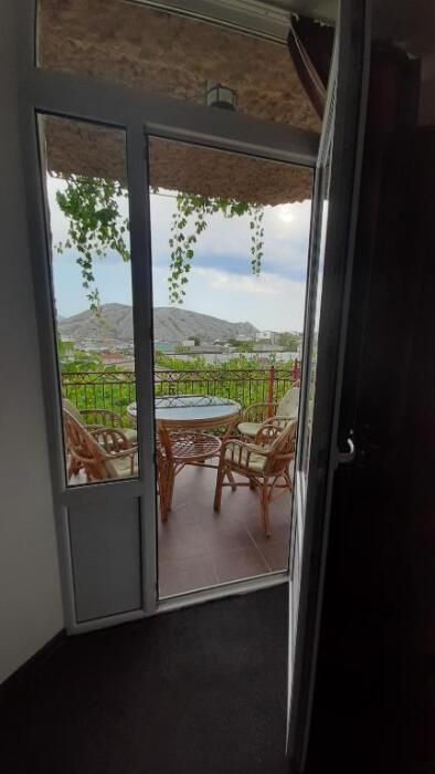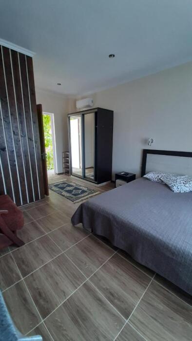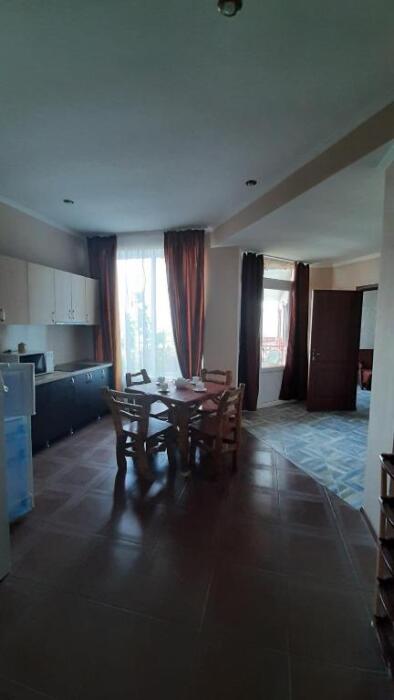 Номер-студия в Эко-стиле. В номере 3 комнаты + большой балкон. Спальня, гостиная, кухня, гардеробная, санузел. Номер находится на 3 этаже, откуда открывается великолепный панорамный вид на море, горы.