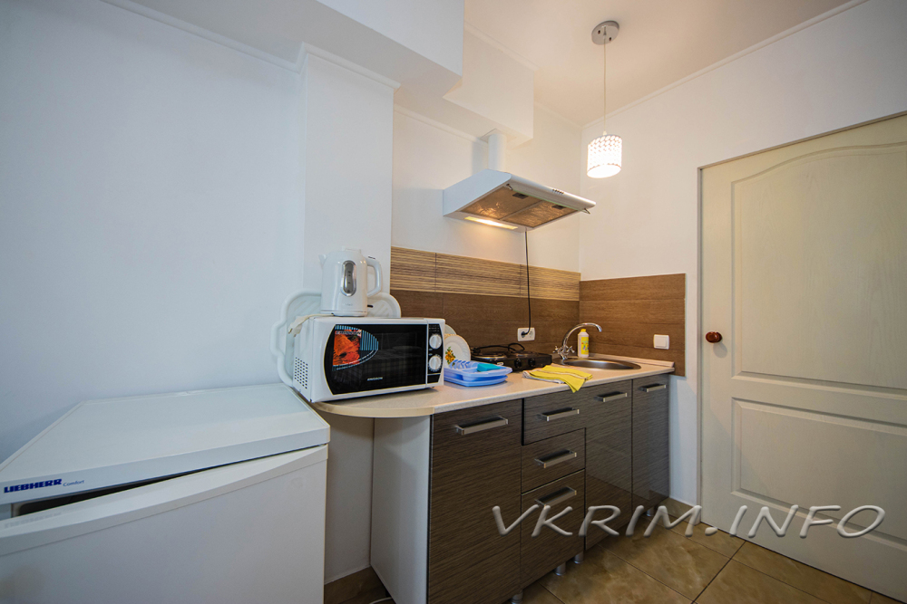 - В квартире все имеется для полноценного отдыха: 2 двуспальных дивана, холодильник, плита, микроволновая печь, кондиционер.