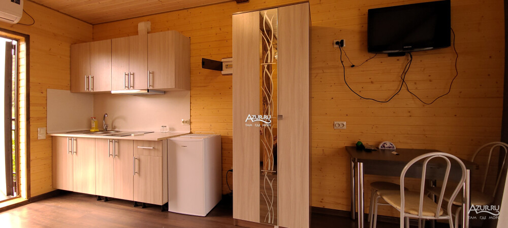 В каждом из апартаментов двуспальная кровать и дополнительное место для ребенка, обеденная зона, спутниковое тв, кондиционер, индукционная плита, вся необходимая посуда, отдельный санузел.
