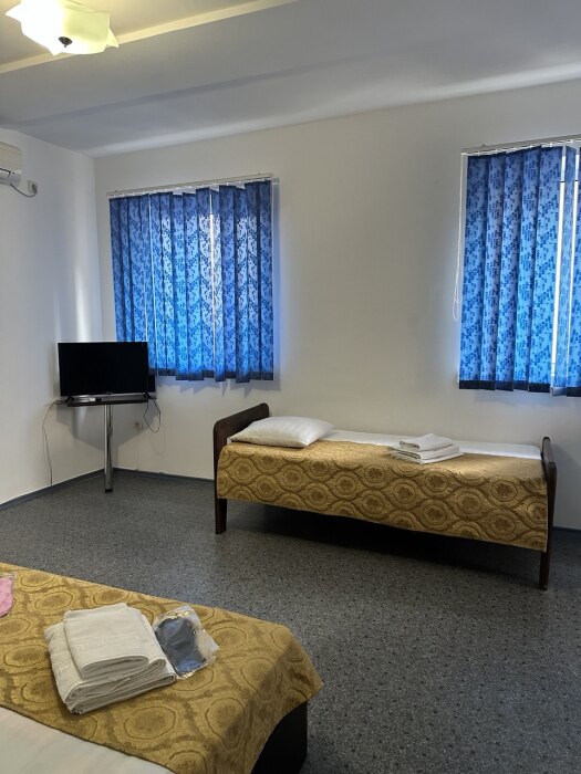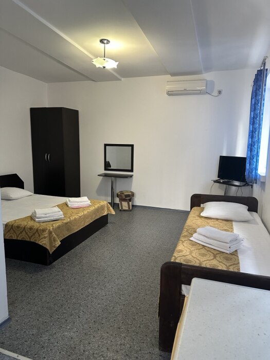 В каждом номере имеется индивидуальный санузел, телевизор, кондиционер, холодильник.
