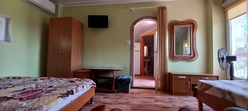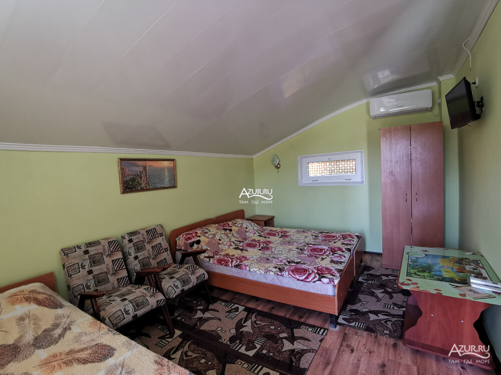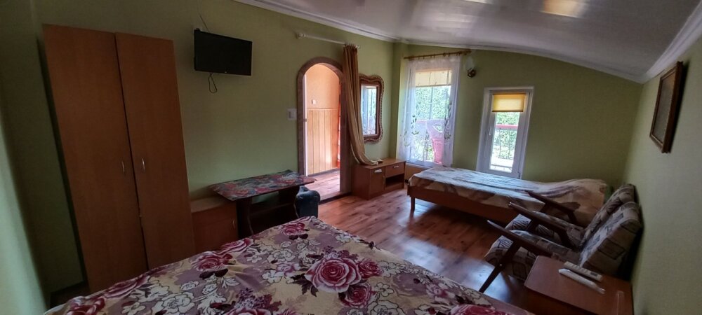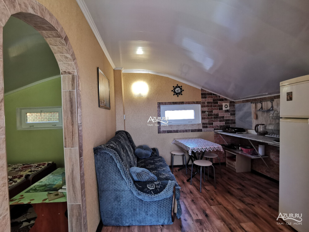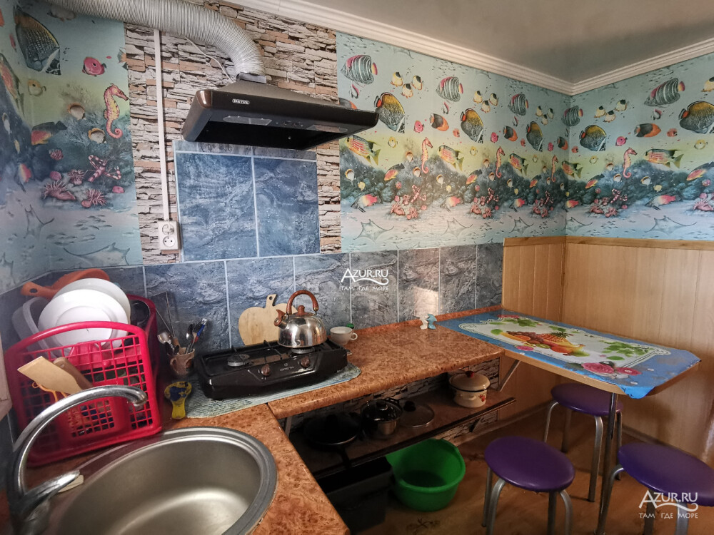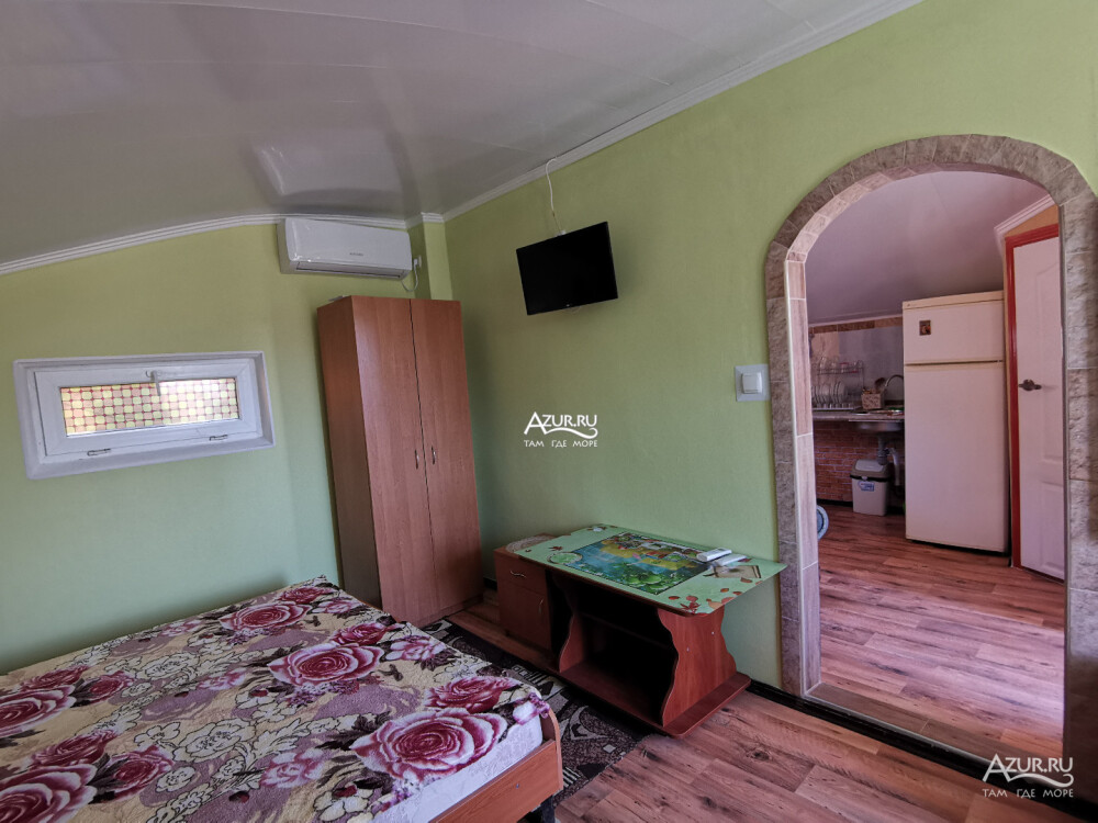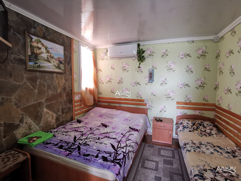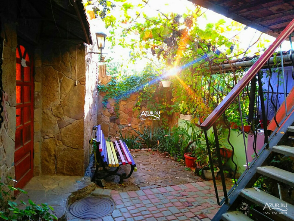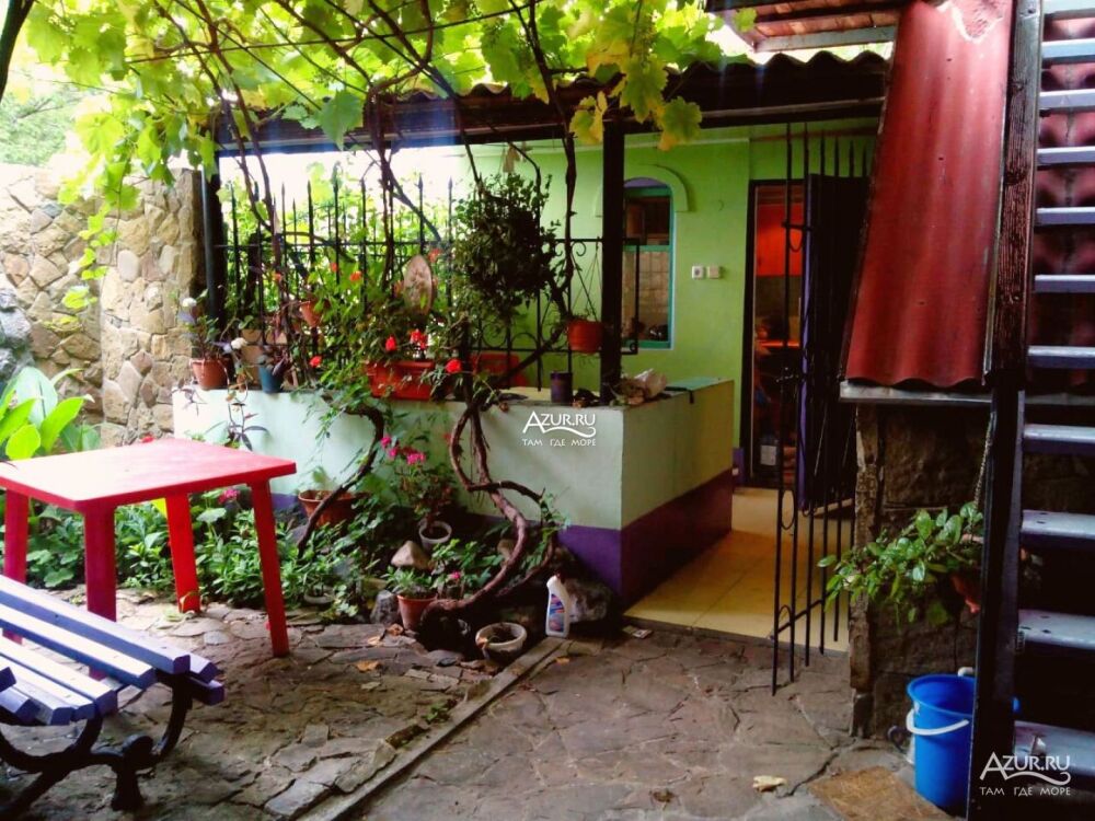 Домовладение имеет закрытый двор, на территории много тени, места для отдыха (беседки и топчан), работает Wi-Fi, во дворе есть мангал. Вода холодная и горячая - постоянно.