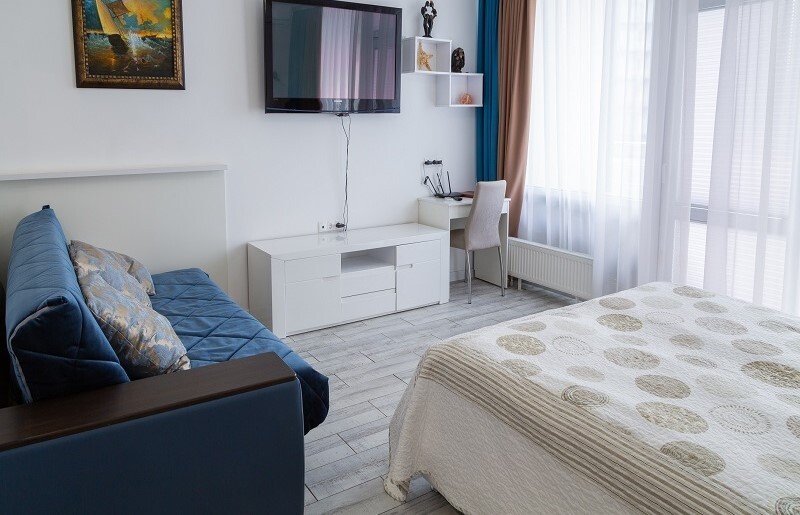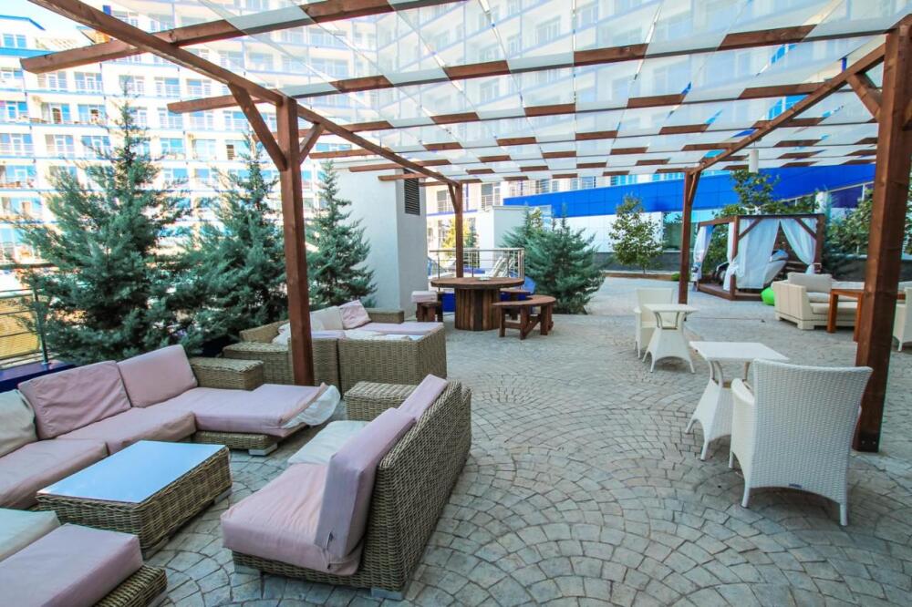 в стоимость апартаментов для отдыха с детьми в Севастополе входит бесплатное пользование инфраструктурой курортного комплекса: