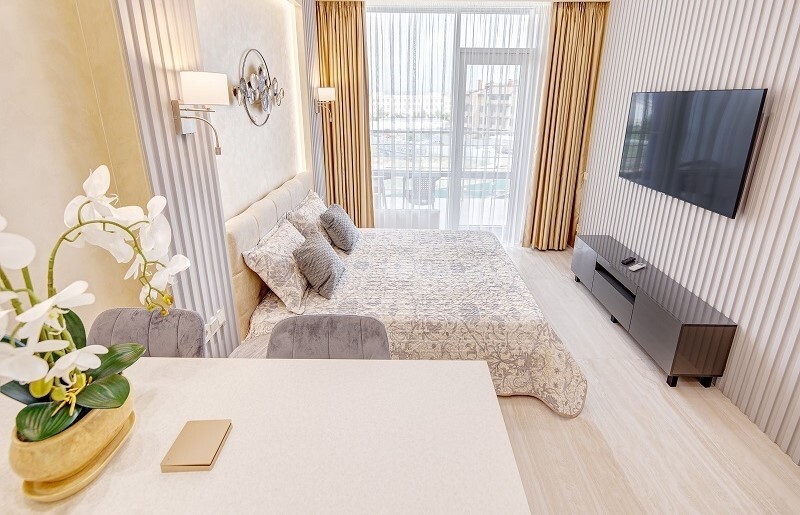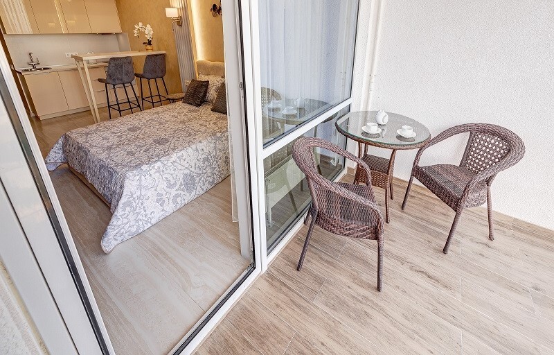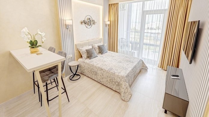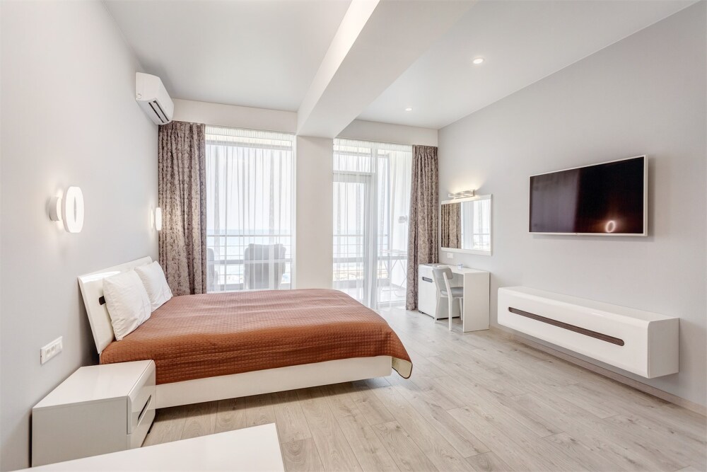 Мы предлагаем проживание в комфортабельных апартаментах на территории одного из самых масштабных курортов на побережье Крыма. Комплекс расположен на первой линии у моря в зеленой парковой зоне.