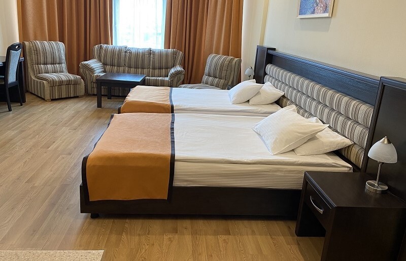 - современный банно-бассейный комплекс: комплекс «Аквамарин» - бесплатно: (современный бассейн с детской зоной и джакузи, оснащенный водными аттракционами и гидромассажем, 4 вида бань и саун: финскую, русскую, турецкую (хамам) и римскую. Комплекс «АкваДелюкс» - 10 разновидностей саун и бань, 7 купелей, просторный бассейн с солёной водой 25 м в длину, площадью 300 м2, детский бассейн, большая соляная пещера.