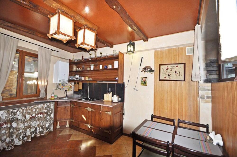Кухня-столовая, на первом этаже дома: мойка, СВЧ, эл.чайник, посуда, холодильник.