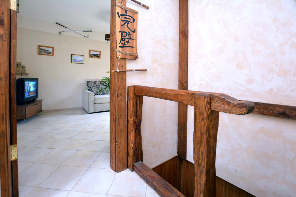 - Номер в двух уровнях (1-2 этаж): на первом этаже большая кухня 10 кв. м. Вход на второй этаж по внутренней лестнице, на втором этаже комната - 15 кв. м + санузел (туалет, раковина, душевая кабина). Есть небольшой балкон. Вход со второго на третий этаж по внешней лестнице.