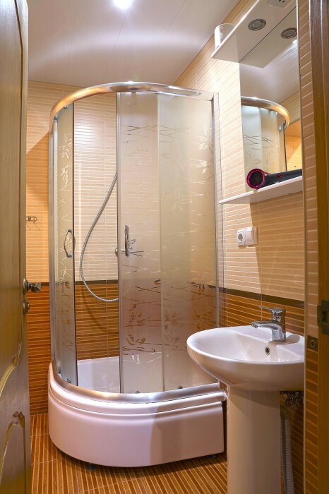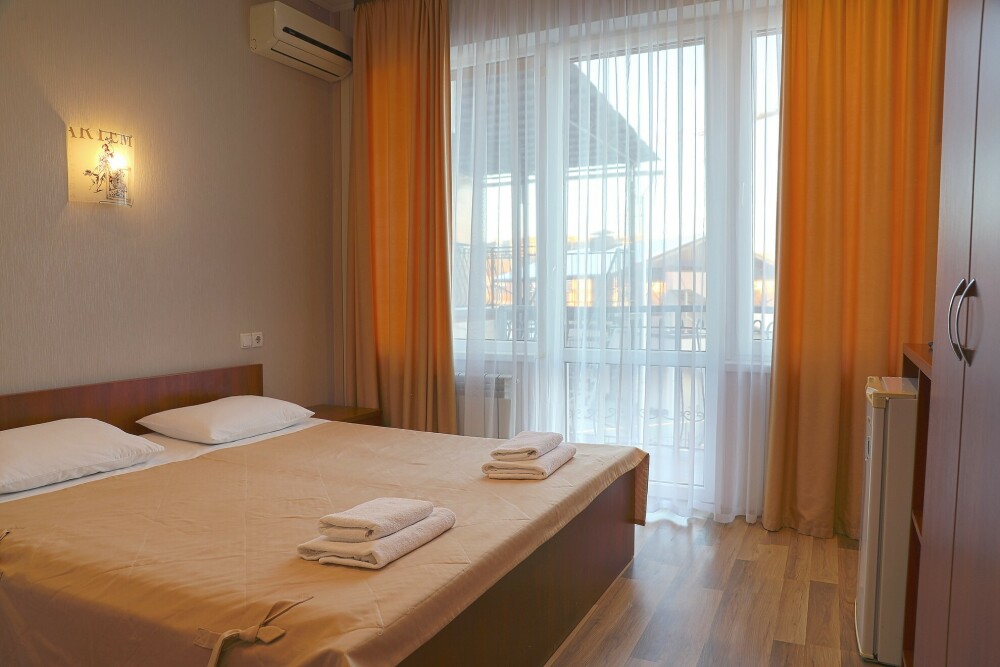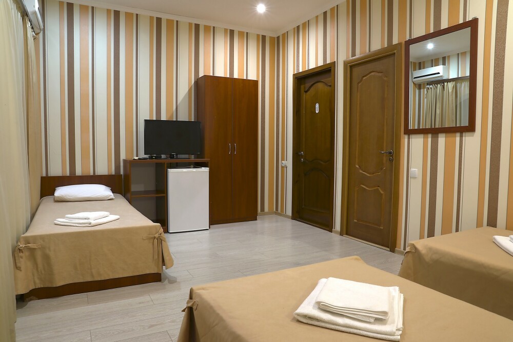 В номере есть кондиционер, холодильник, телевизор, wi-fi, фен, полотенца, стол, тумбочки, шкаф-гардероб. Санузел совмещенный с душевой кабинкой.