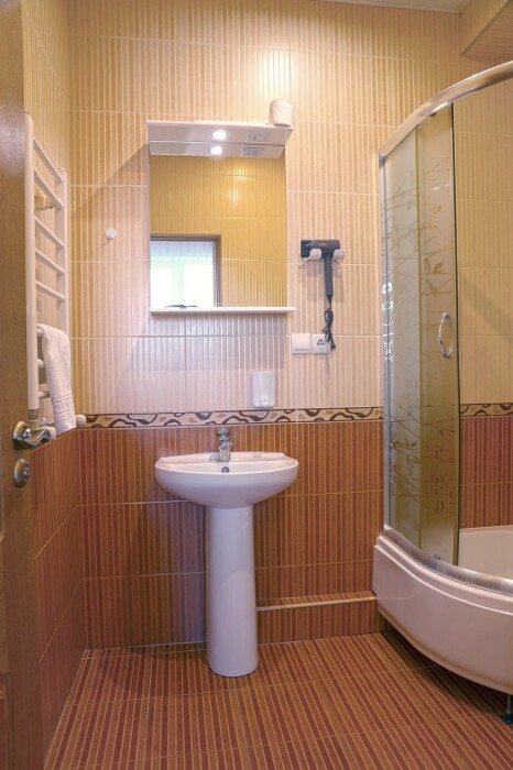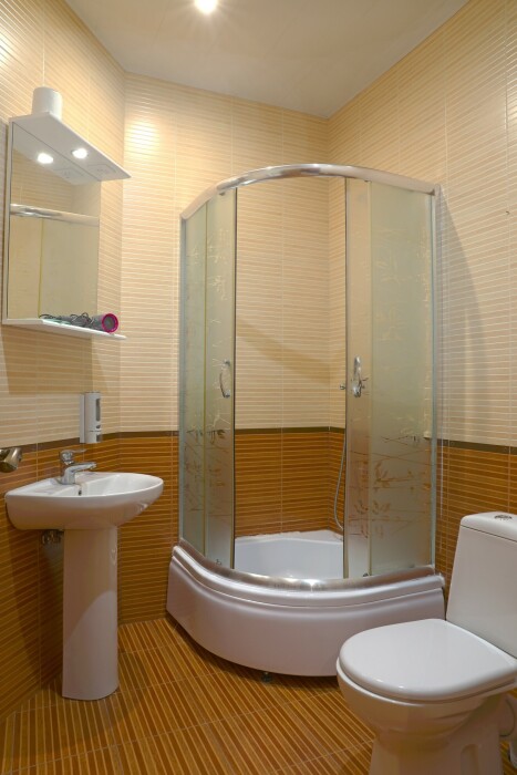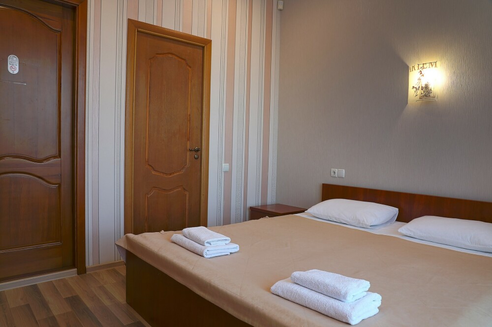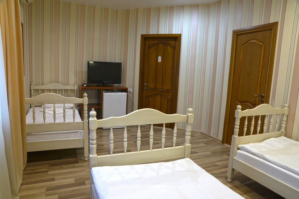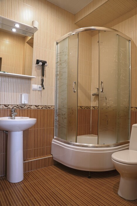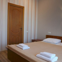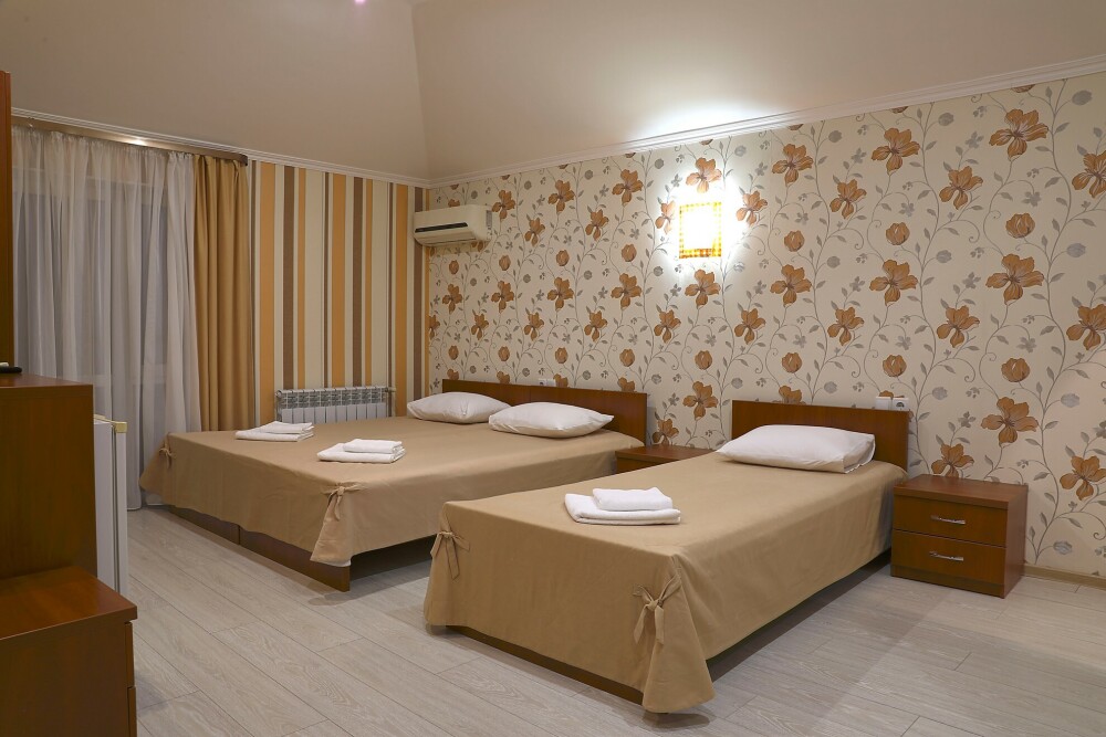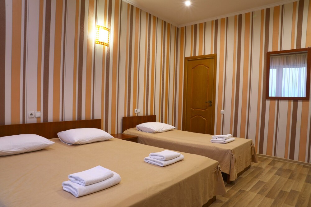 В номере есть холодильник, телевизор, wi-fi, фен, полотенца, стол, тумбочки, шкаф-гардероб. Санузел совмещенный с душевой кабинкой.