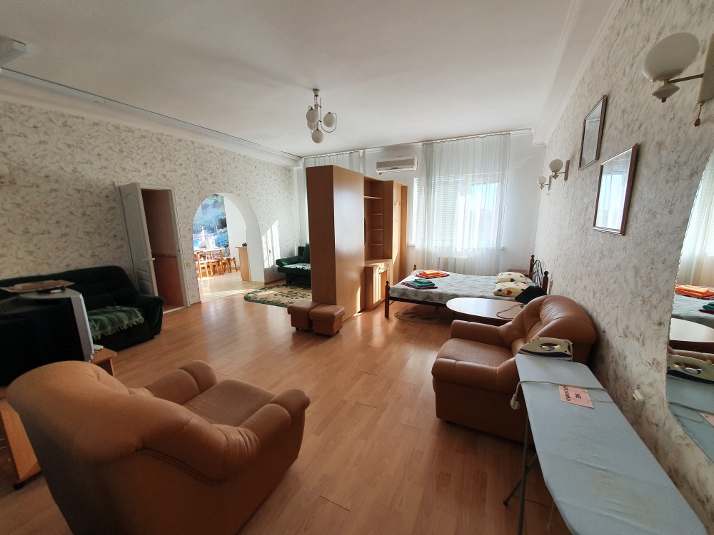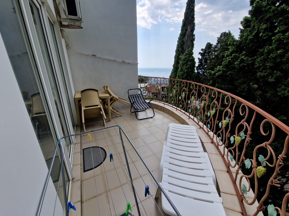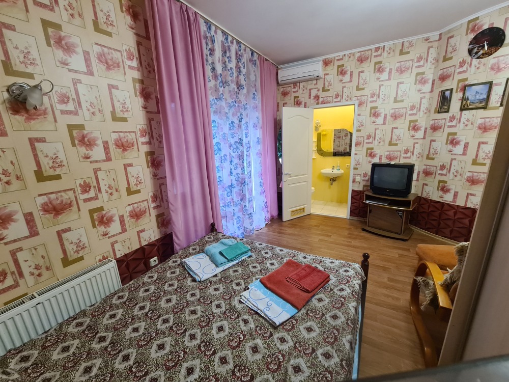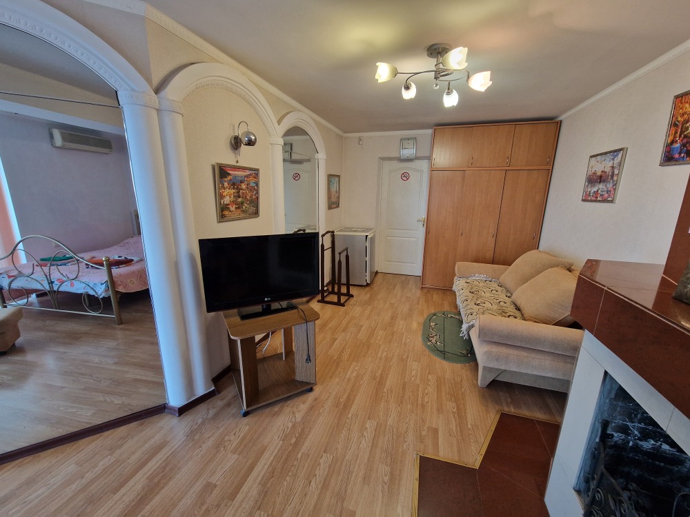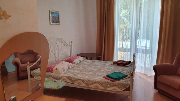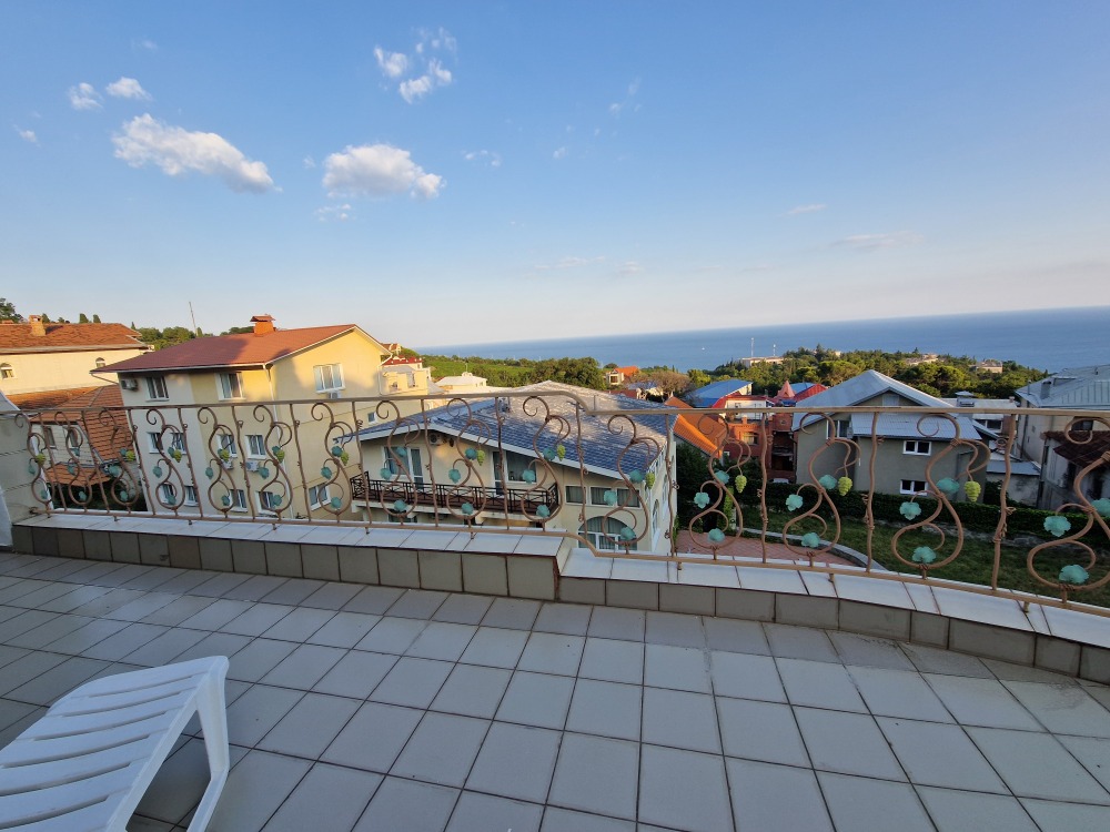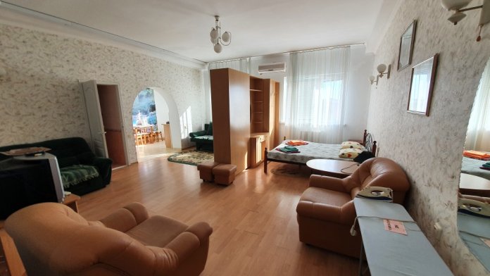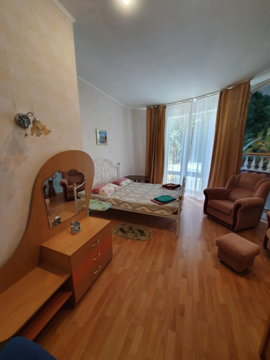 Однокомнатный комфортный номер общей площадью - 25 кв. м с большой открытой террасой 30 кв. м, с которой открывается красивый вид на море.