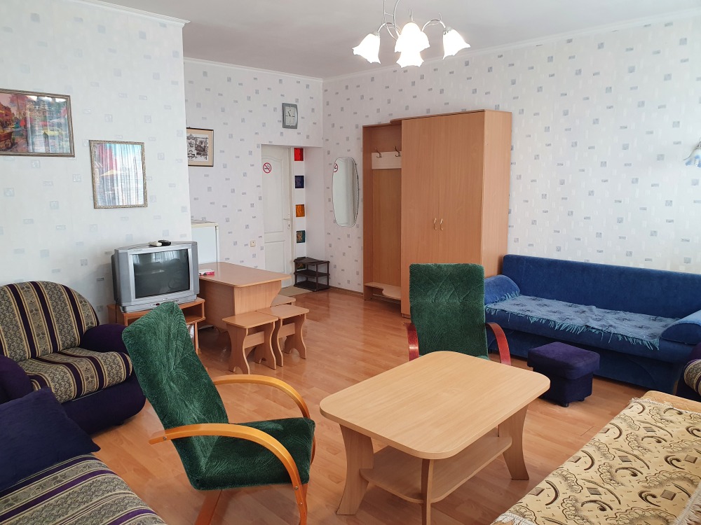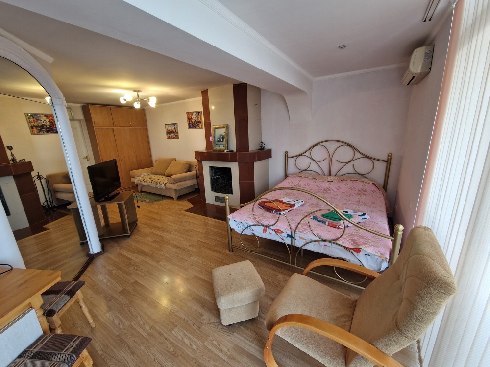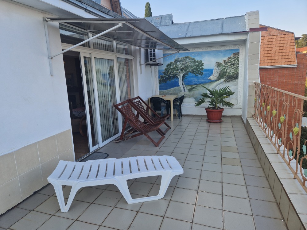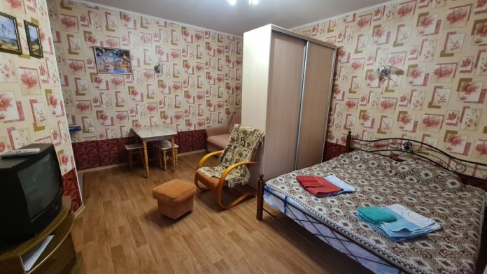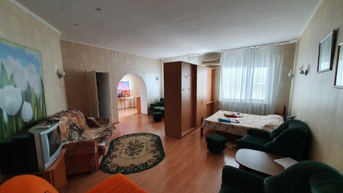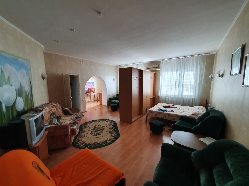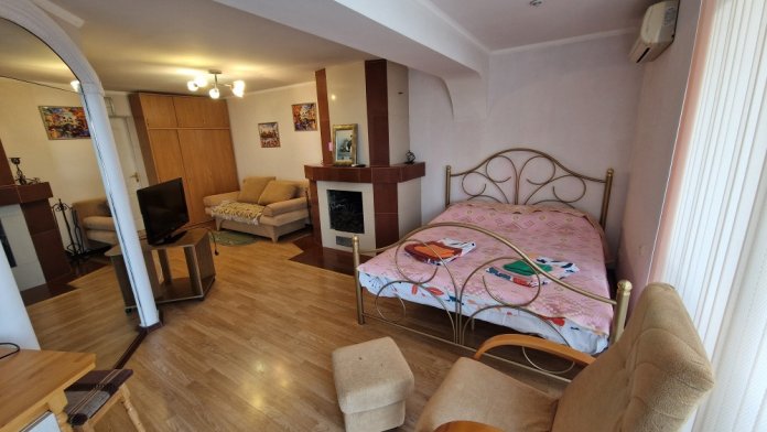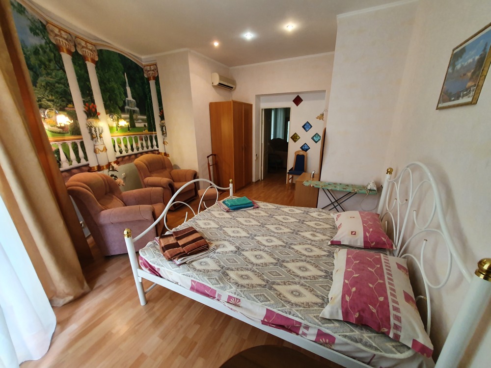 Однокомнатный комфортный номер общей площадью - 25 кв. м с большой открытой террасой 30 кв. м, с которой открывается красивый вид на море.