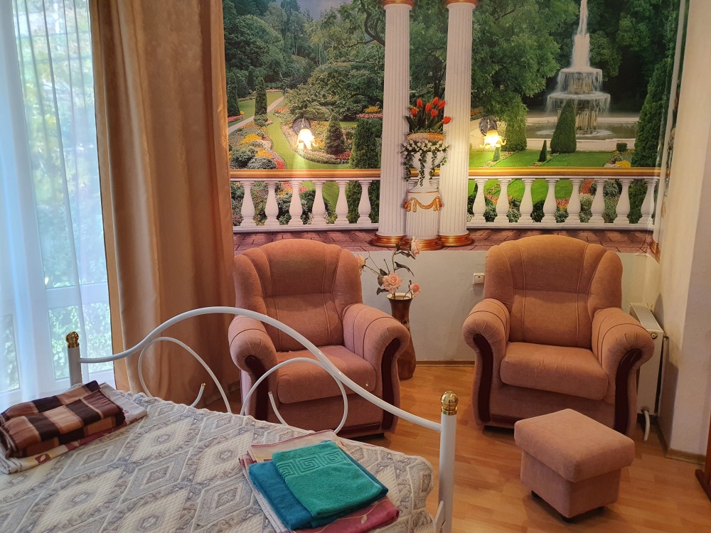 Номер имеет отдельный выход во двор к бассейну и в сад.