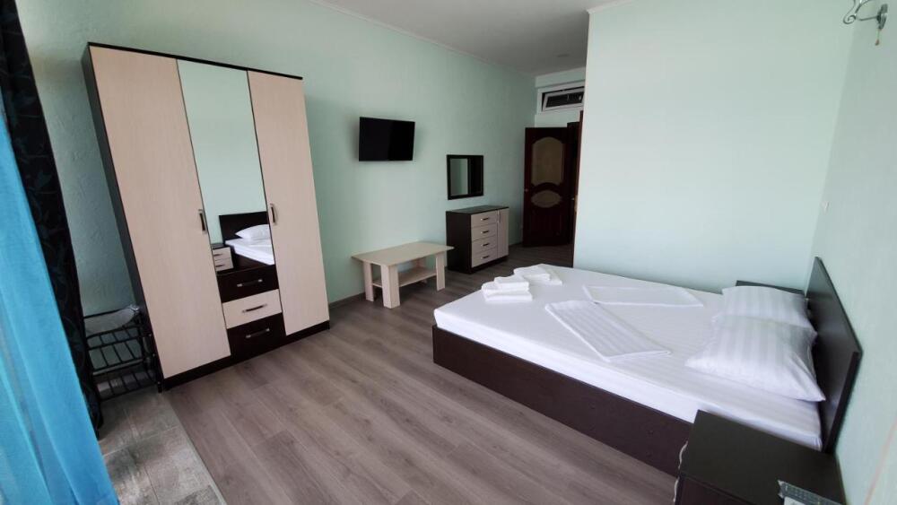 Каждый номер имеет большую лоджию с видом на море, кухню и все необходимое для приготовления пищи, микроволновую печь, электрочайник и холодильник. Номера оборудованы двуспальной или двумя односпальными кроватями и телевизором с плоским экраном. Также в каждом номере отдельный санузел. При необходимости бесплатно оборудуем номер детской кроваткой для младенцев или раскладной кроватью для взрослых или подростков за отдельную плату.