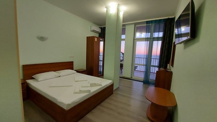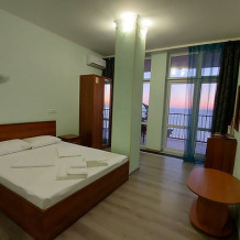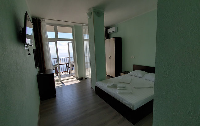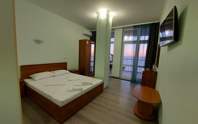 Номера этого типа с большой лоджией и видом на море, в спальне двуспальная кровать или две односпальные, кондиционер, телевизор с плоским экраном и санузел. При необходимости бесплатно оборудуем номер детской кроваткой для младенцев или раскладной кроватью для взрослых или подростков за отдельную плату.