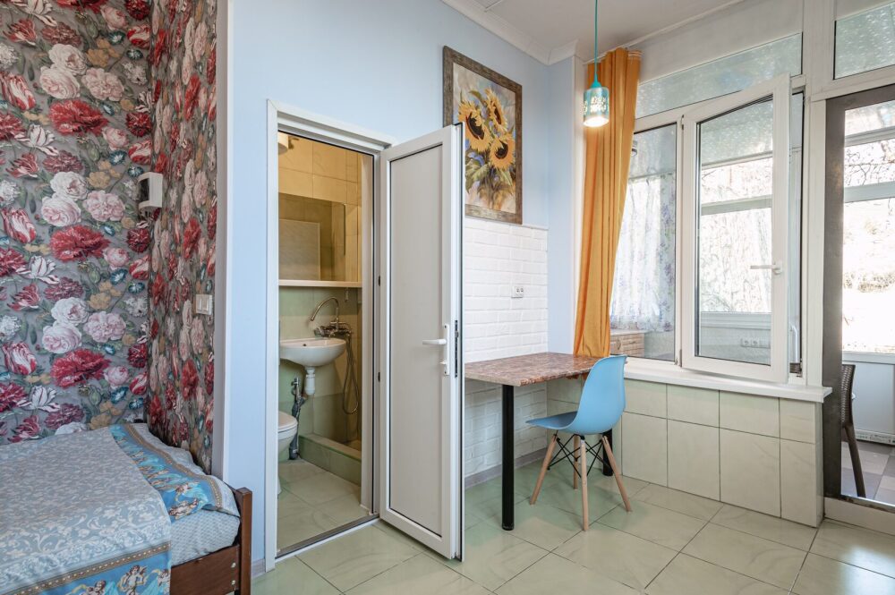1 комната + кухня-веранда + собственная территория со столиком (огорожена) + общая территория с основным домом.
