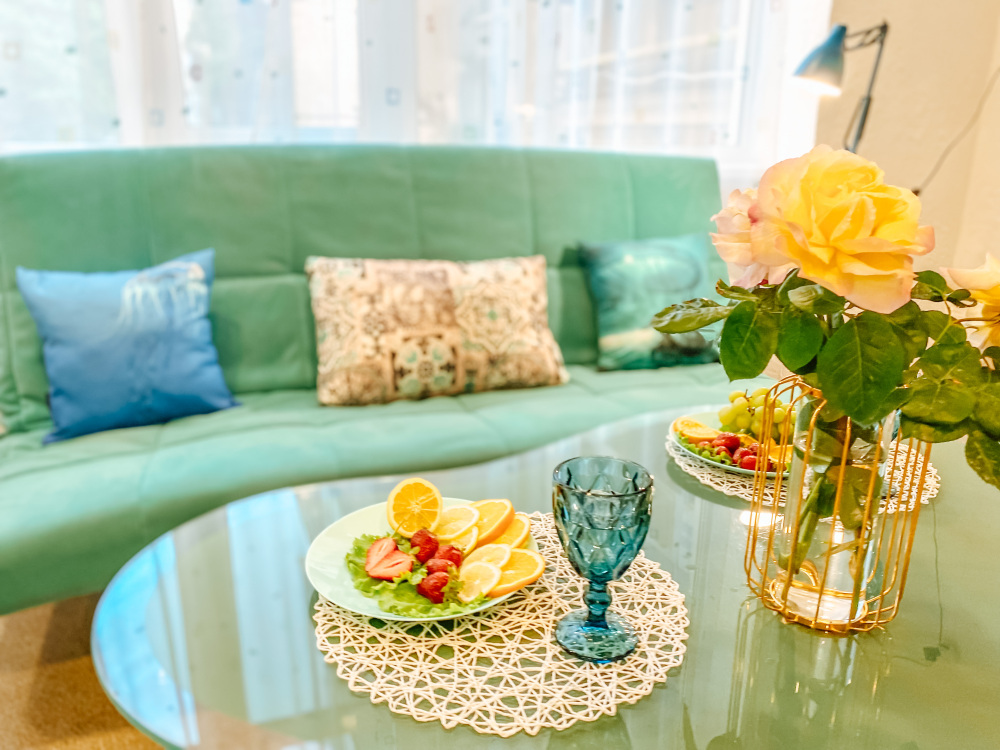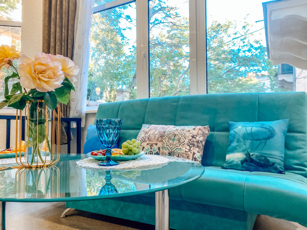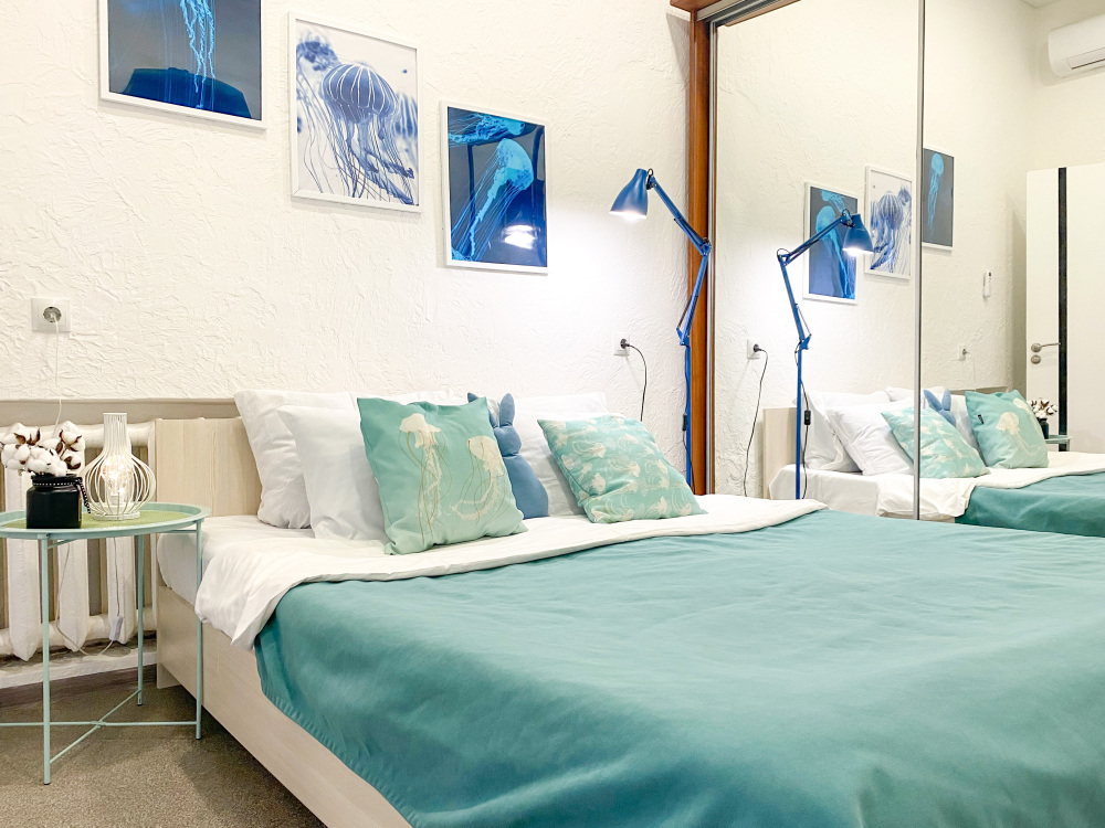 В третьих, это продуманный дизайн квартиры. Квартира выдержана в светлых ,голубых и мятных оттенках , что придаёт ощущение уюта и чистоты. Отдельная спальня и огромная гостиная не оставят Вас равнодушными.