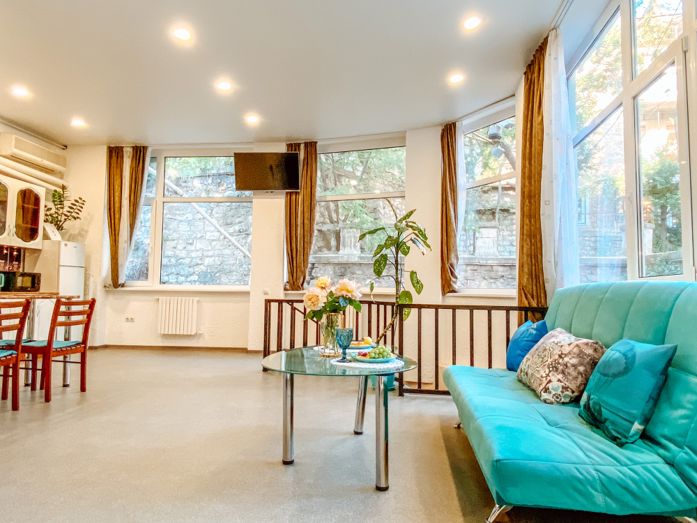 Во-первых, это локация - расположена она у площади Ушакова . Набережная и Приморский бульвар в 10 минутах ходьбы , супермаркет и столовая в 5 минутах, рядом музеи и все достопримечательности центра.