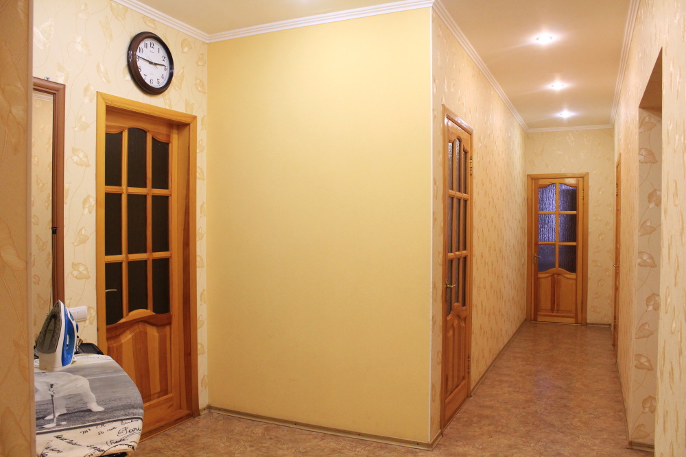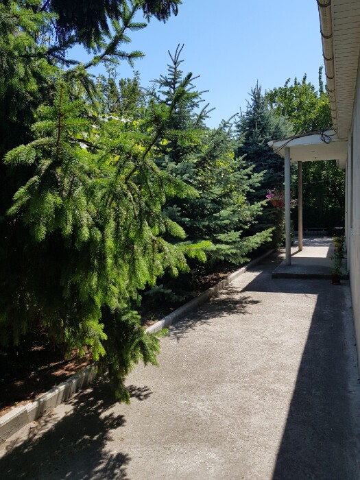 Отдельная комната в частном доме с видом на сад. В комнате большая двухспальная кровать, двуспальный диван, кондиционер, телевизор, Wi-Fi. Возможно размещение доп. мест. Санузел и ванная комната находятся на этаже. Дополнительное место - кровать-раскладушка.