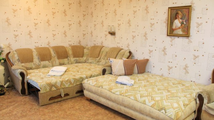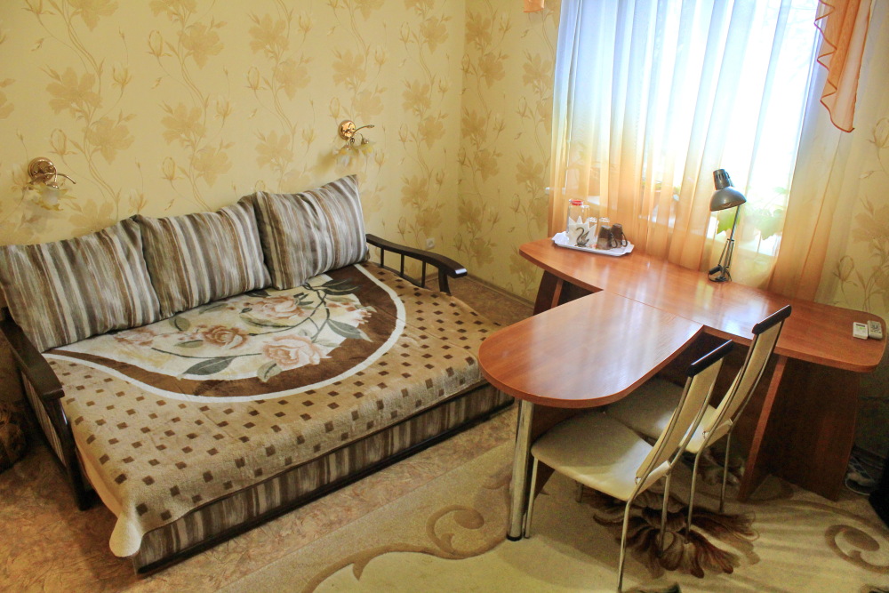 Отдельный номер в частном доме с видом на сад. В комнате большой двухспальный диван, отдельный свой санузел, кондиционер, телевизор, Wi-Fi. Дополнительное место - кровать-раскладушка.