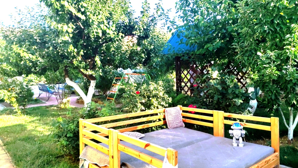 Услуги на территории: общая кухня (самостоятельно) + питание на заказ (платно), трансфер (платно), стиральная машина, Wi-Fi интернет, мангал, детская площадка, зеленый двор, беседка (4 шт.), гладильная + утюг, СВЧ, спутниковое ТВ, места для курения.