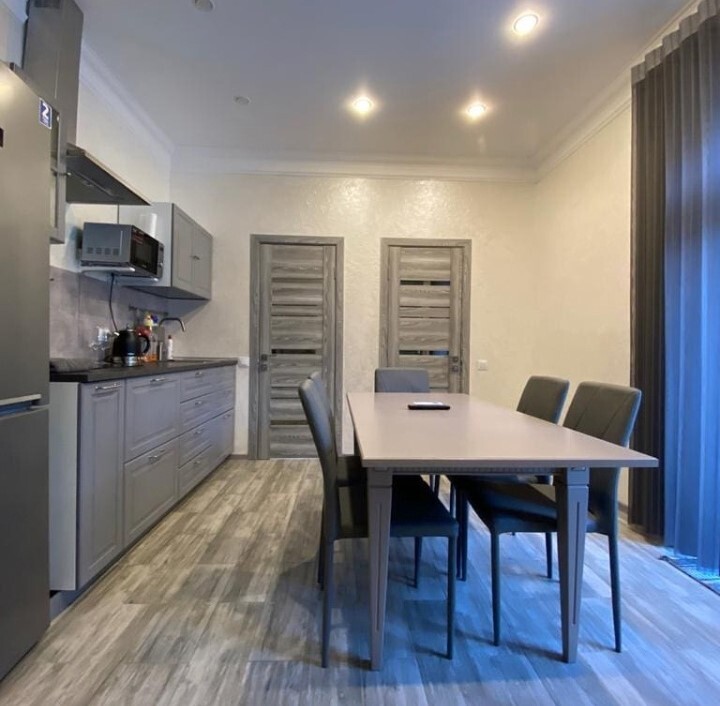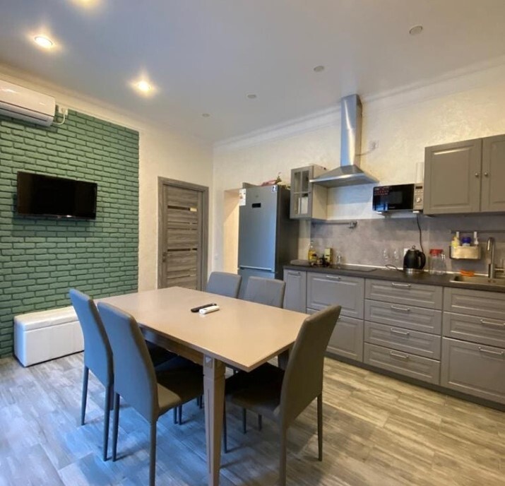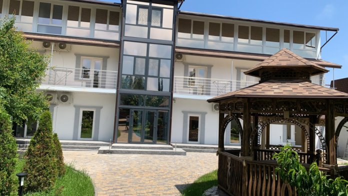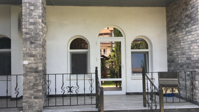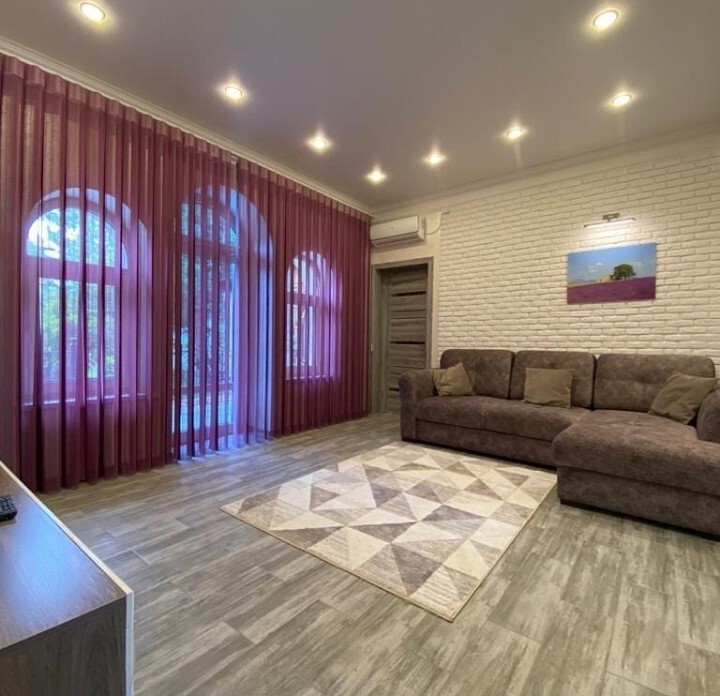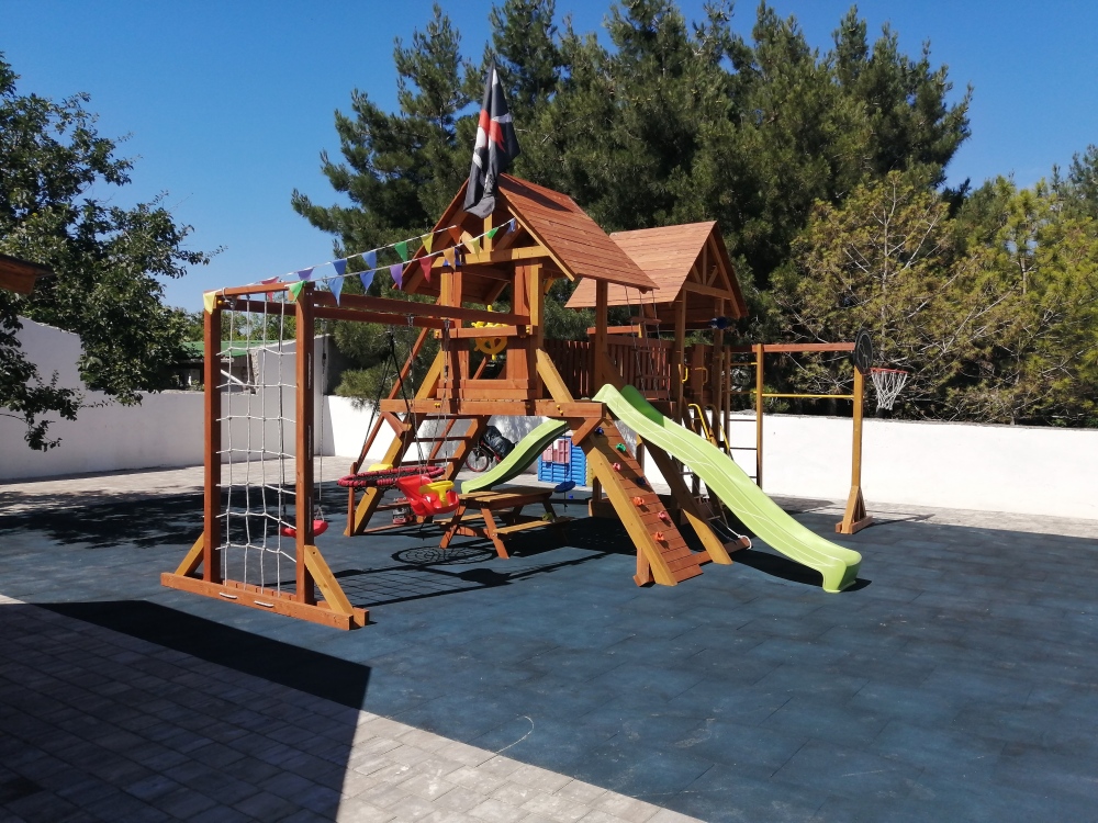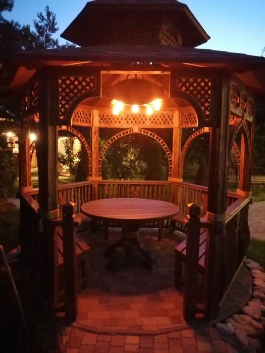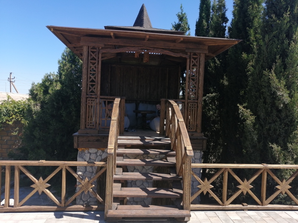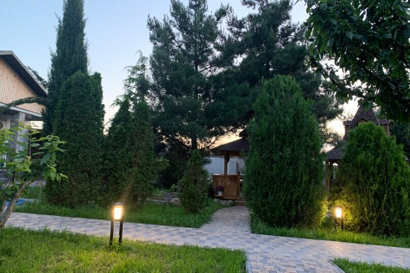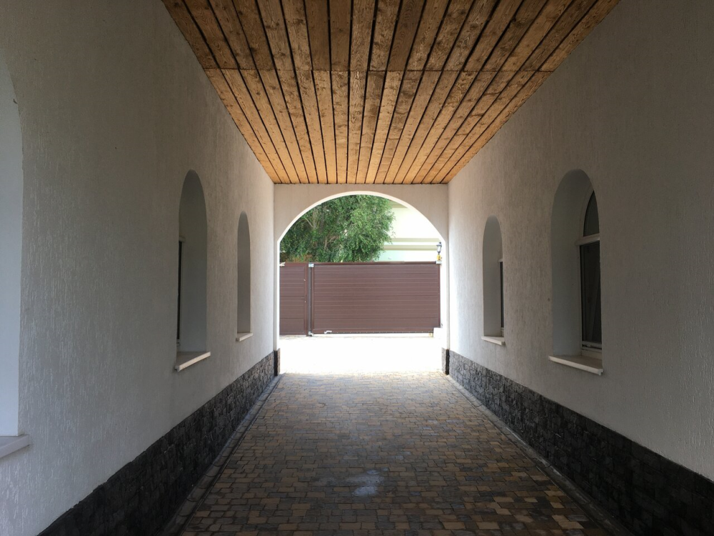 Двор утопает в зелени, много беседок для приятного времяпрепровождения, мангал, детская площадка с батутом, парковка.