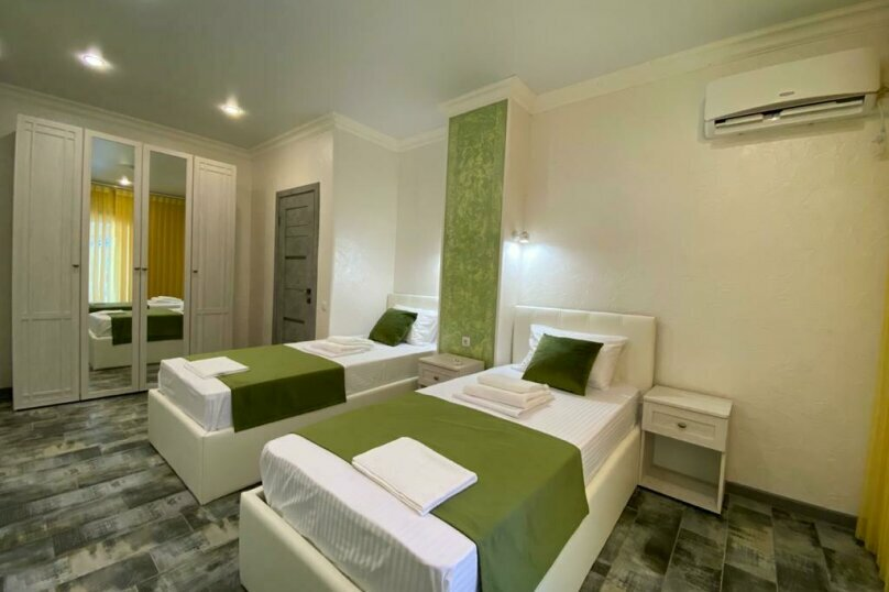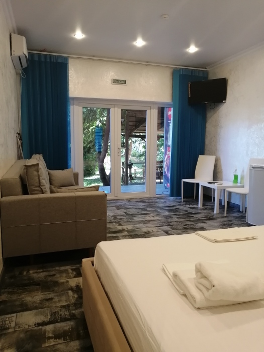 Мы предлагаем гостям проживание в одном из 14 дизайнерских номеров или в коттедже (для большой компании или семьи). Мини-отель открыл свои двери в 2021 году, у нас новая качественная мебель и сантехника, ортопедические матрасы.