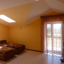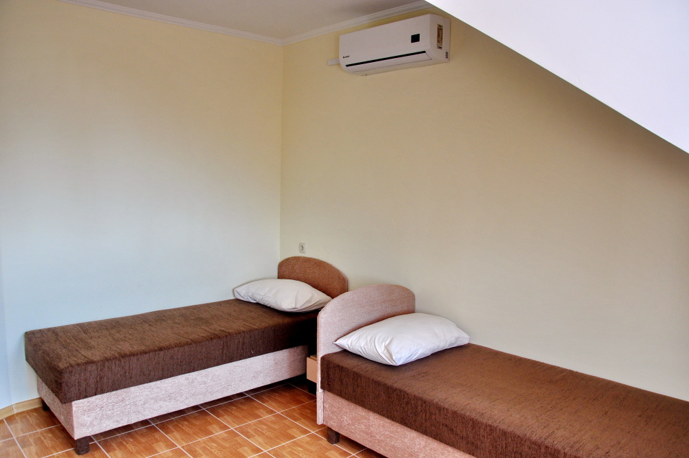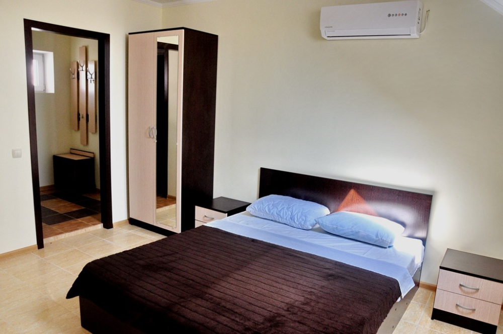 На территории 2 дома. В первом : 7 комнат для размещения 2человек, 1 3-местный, 4 2-комнатных 4-местных и большая комната для дружной компании из 5-6 человек.