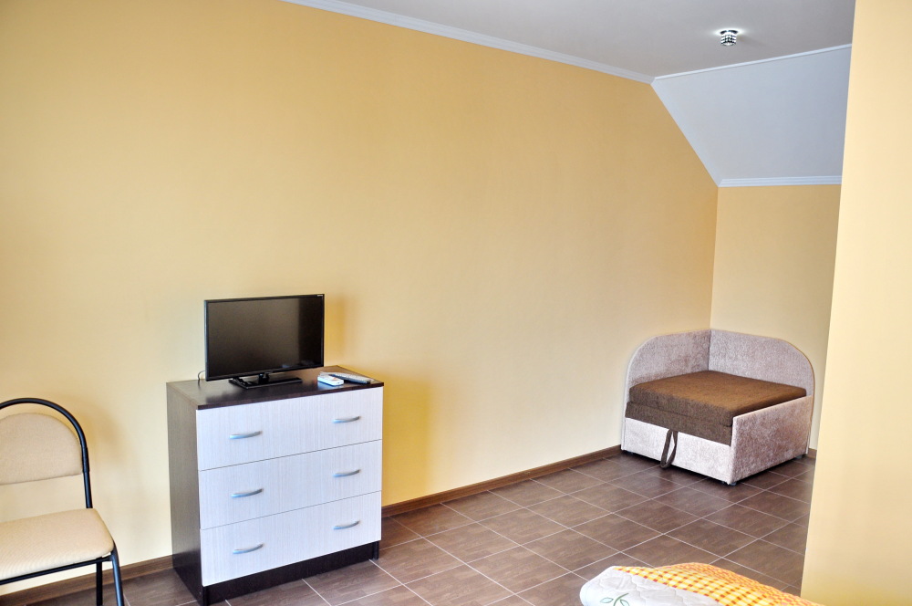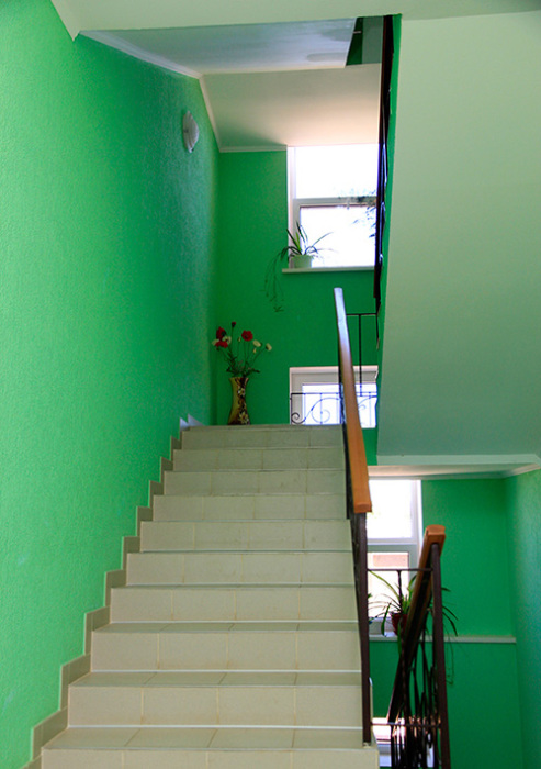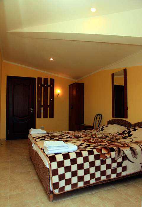 Во втором : 4 3-местных комнаты , 2 комнаты полулюкс «DOG» и «CAT» и 2 2-комнатных 4-местных. В комнатах холодная, горячая вода, балкон, телевизор, wi-fi, холодильник, кондиционер.