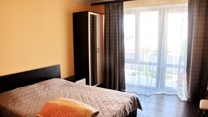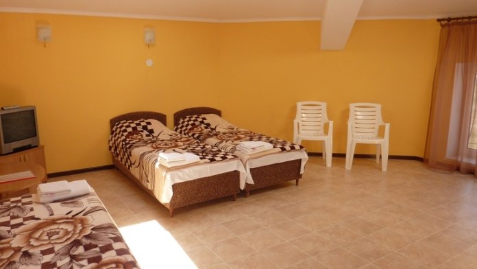 Рядом с гостевым домом останавливается маршрутное такси № 8, на котором Вы в течение 20 минут доберетесь до центра Евпатории. В 150 м от дома располагаются 3 продуктовых магазина, кафе.