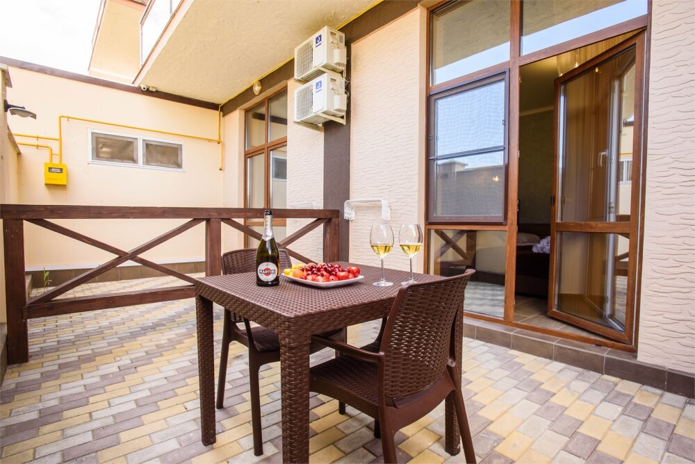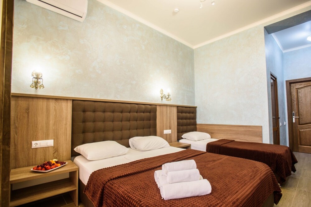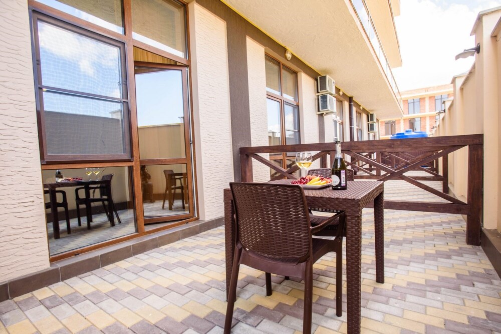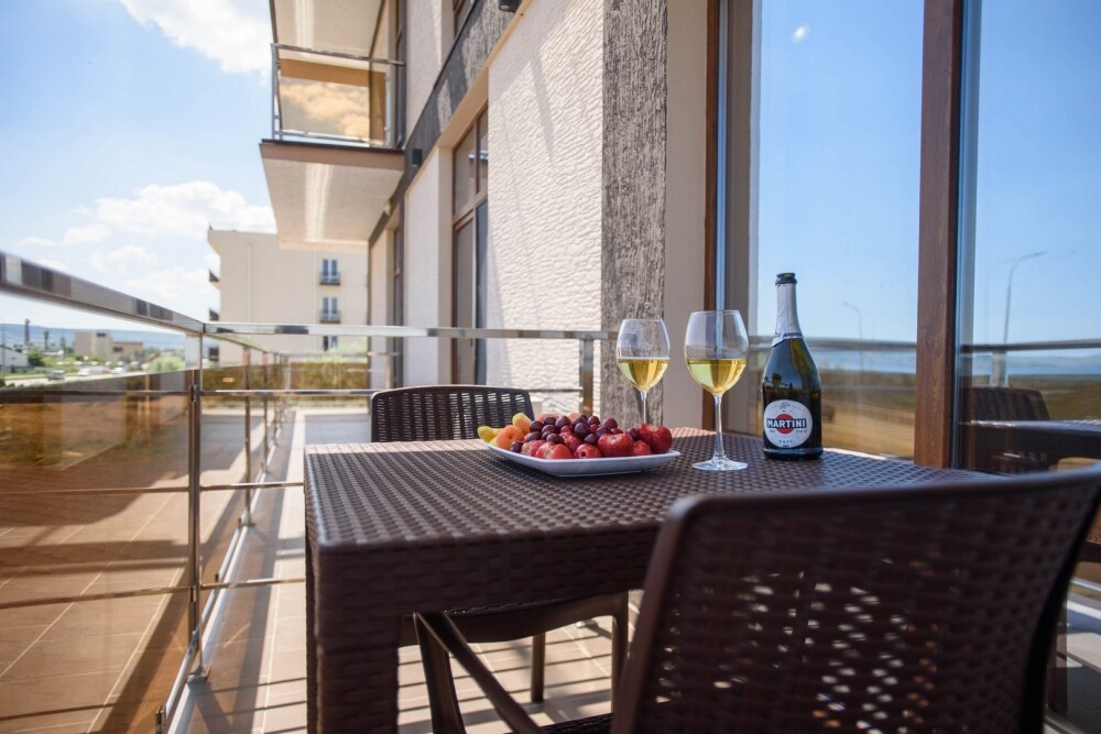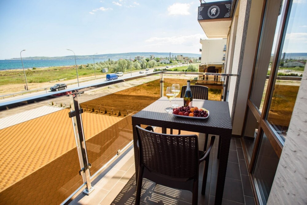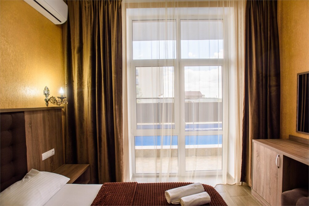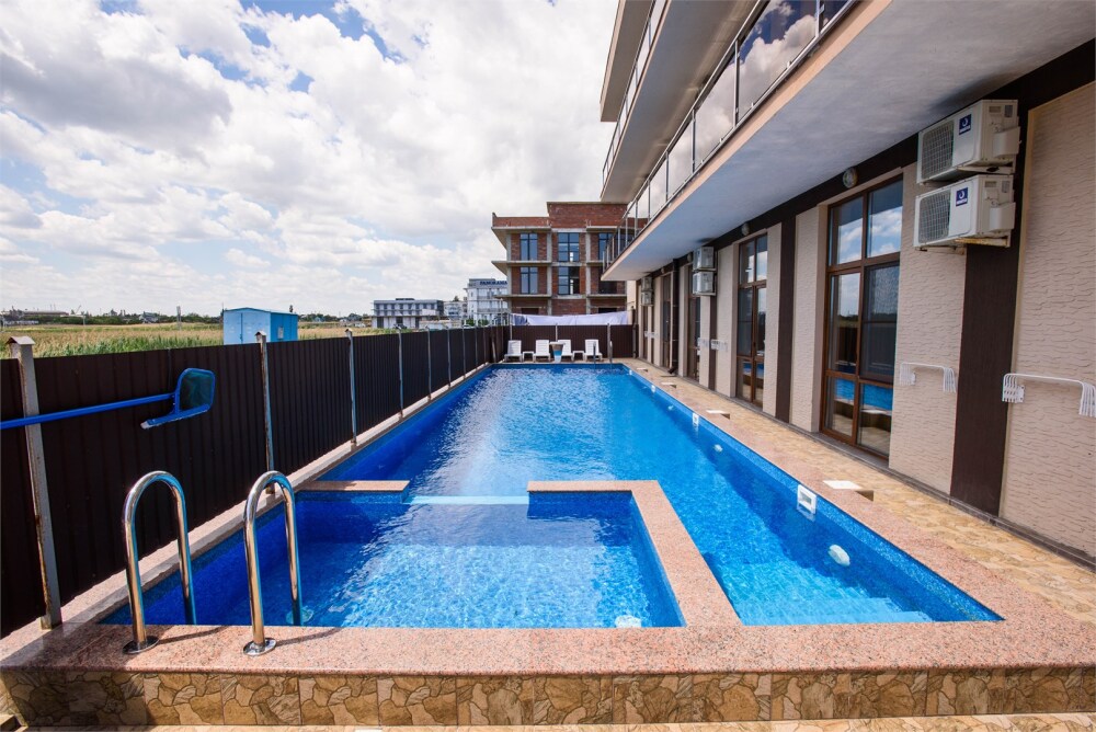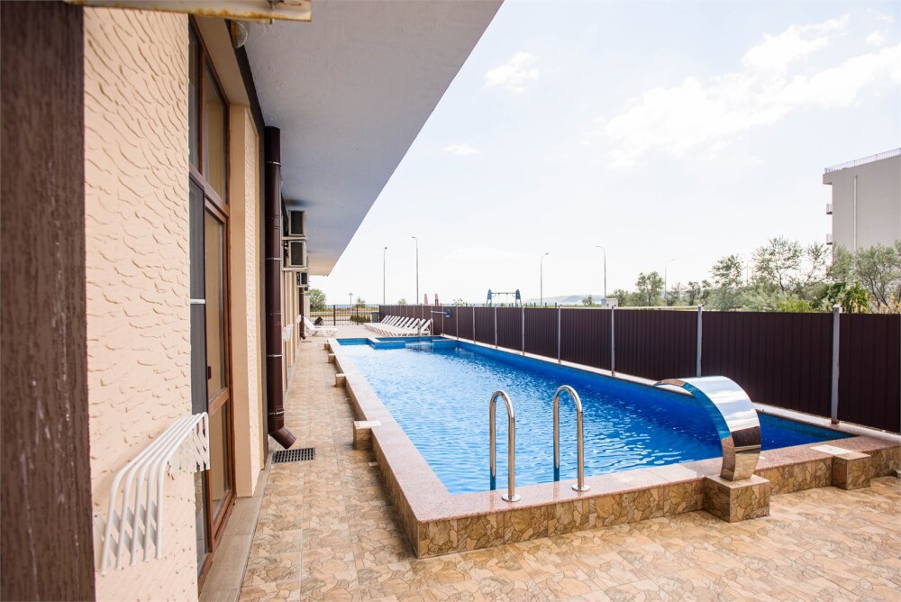 Отель «Одиссея» с собственным бассейном, современный отель, 2020 г. постройки, расположен на 1-й береговой линии, через дорогу от Золотого пляжа курорта Феодосия.