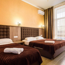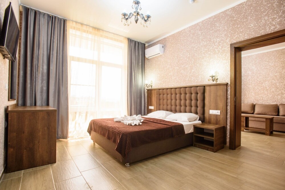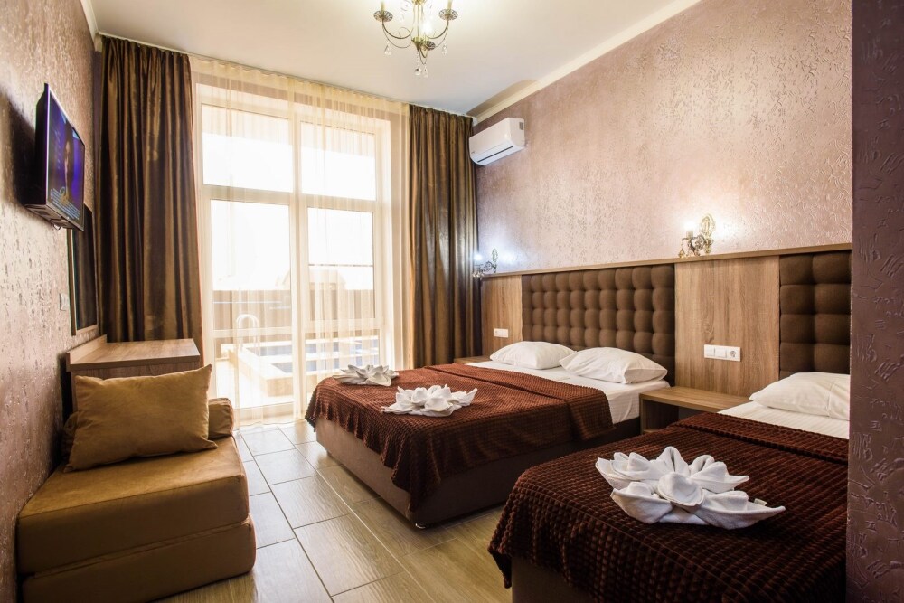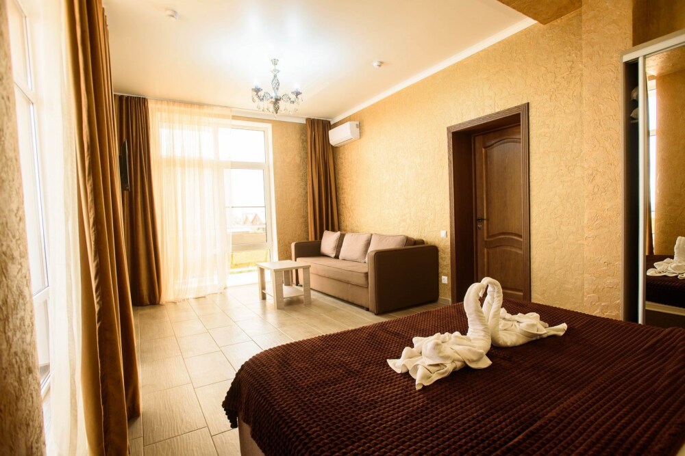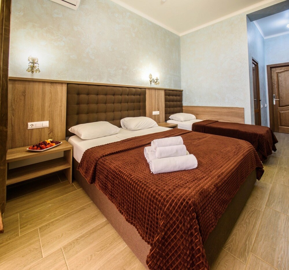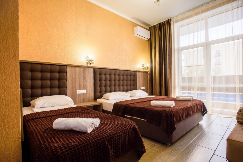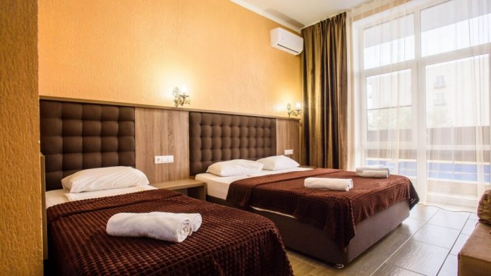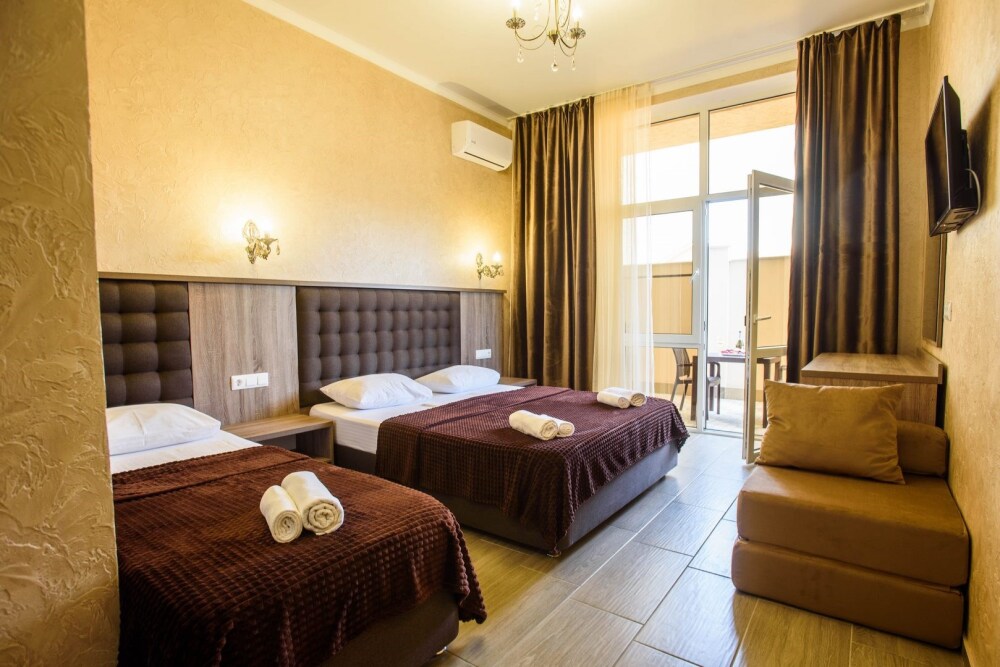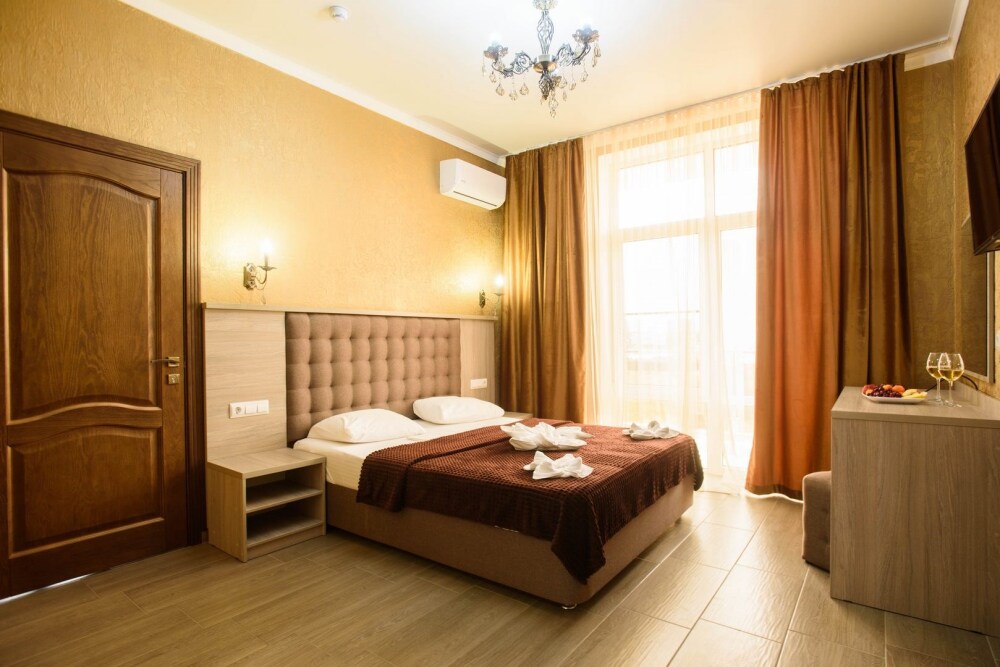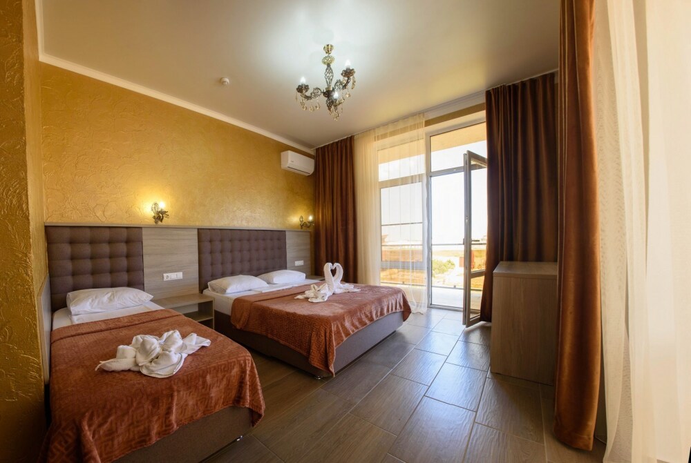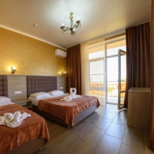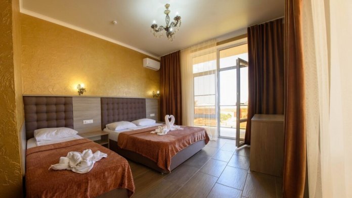 Особенности: отель расположен рядом с оборудованным Золотым пляжем (пляжи «Кораблик», «Санта-Круз», «Санрайс», «Алые Паруса», №117) со всей инфраструктурой отдыха для детей и взрослых, в 2 мин. езды от автостанции и ж/д станции Айвазовская.