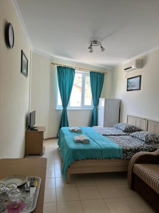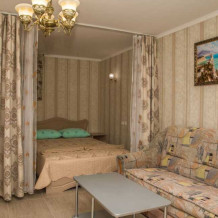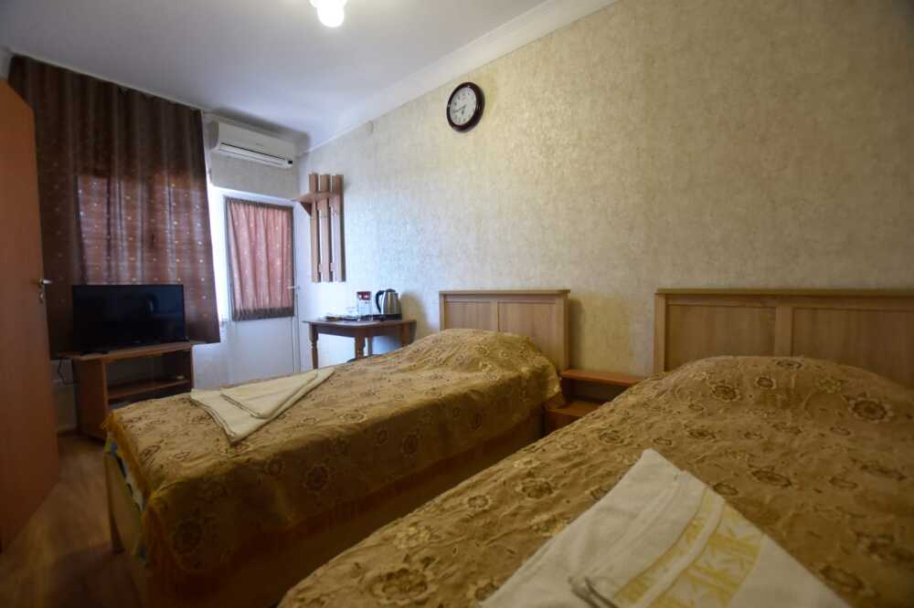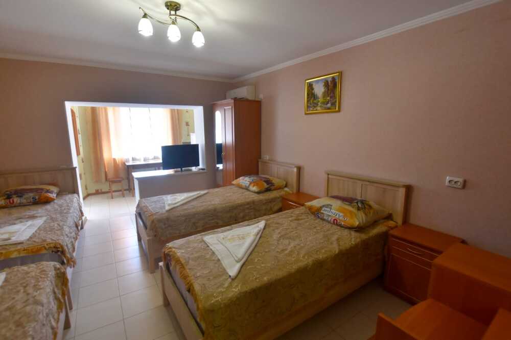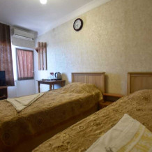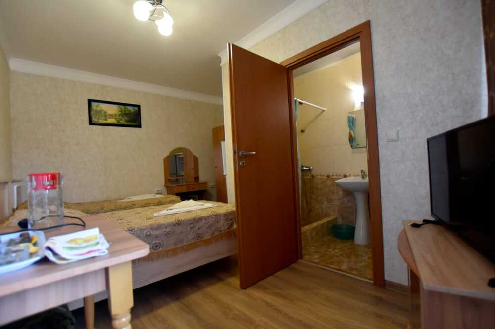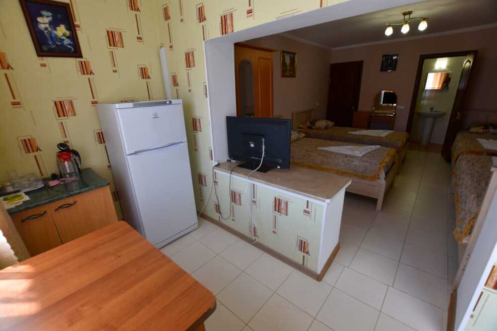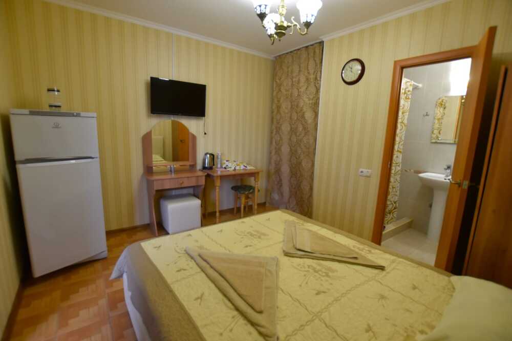 К Вашим услугам в гостевом доме предоставляются номера класса полулюкс. Всего 15 номеров. В каждом номере: холодильник, сплит-система, посуда, ТВ, доступ в интернет, душ, туалет, умывальник. Есть общаямини- кухня на этаже и в некоторых номерах.