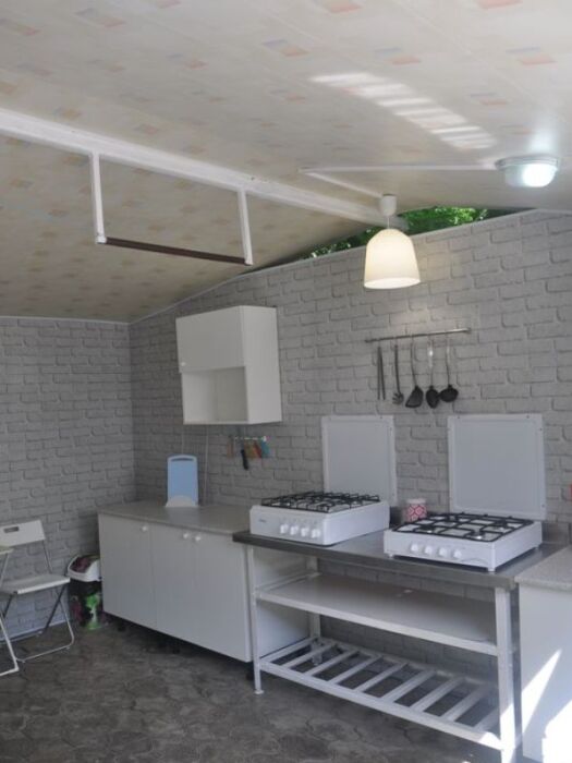 На закрытой охраняемой территории имеется парковка (бесплатно), детская игровая площадка, зона барбекю со всеми принадлежностями, летняя кухня для приготовления пищи с полным набором посуды и оборудования, летние столики, закрытая столовая для приема пищи, живописная беседка с декоративным водоемом, красивый сад-патио.