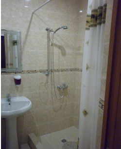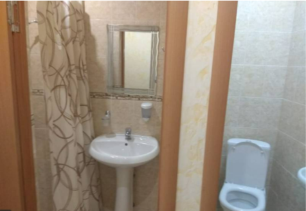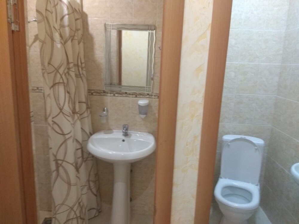 Индивидуальная ванная комната: душ, раковина, туалет.