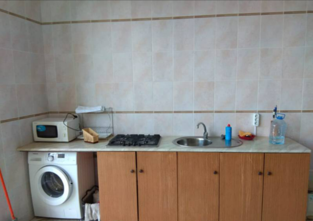 Имеется кухня, телевизор, кондиционер, шкаф, вешалка, обеденный стол, стулья, посуда, столовые приборы, микроволновая печь, чайник, холодильник, электрическая плита, стиральная машинка, сушилка для белья.