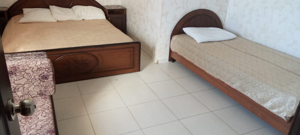 В номере одна двуспальная кровать и одна односпальная кровать.