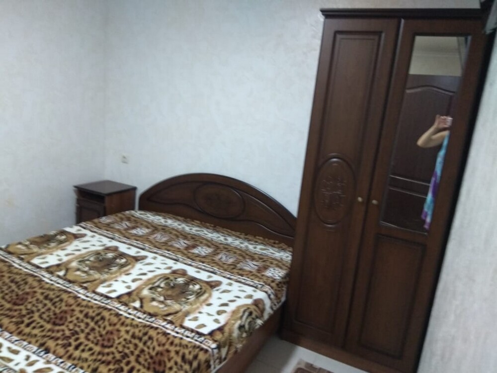 В номере одна двуспальная кровать.