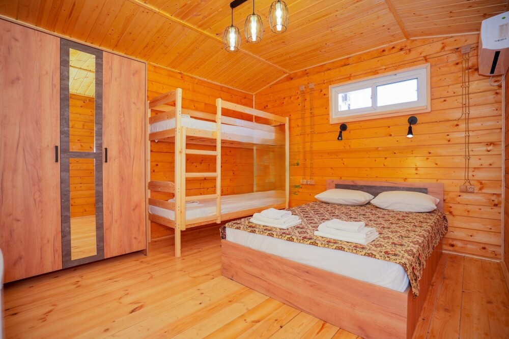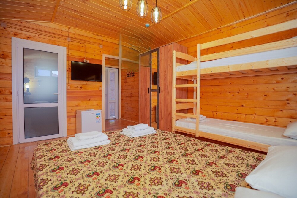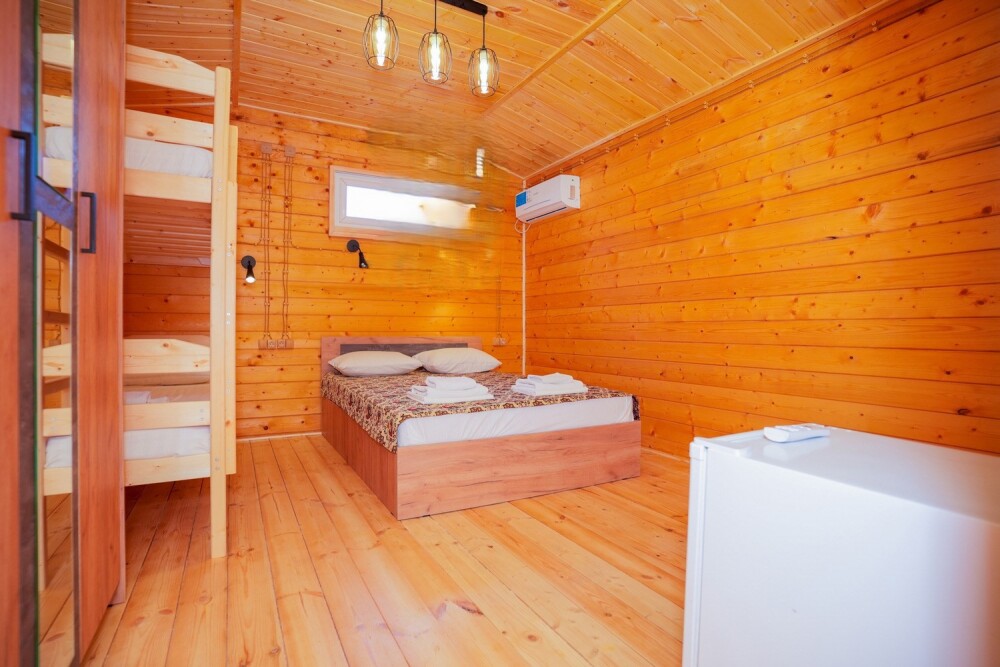 Оснащение: двухспальная кровать, двухъярусная кровать, телевизор, кондиционер, холодильник, ванная комната, гигиенические средства, комплект полотенец