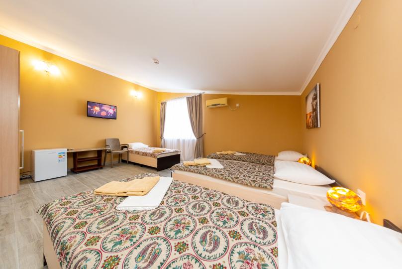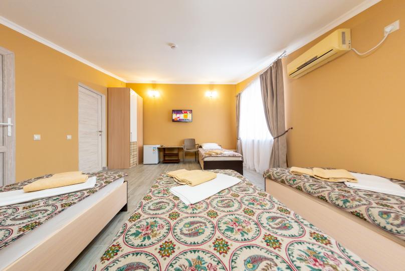 Оснащение: двухспальная кровать, две односпальные кровати, телевизор, кондиционер, холодильник, ванная комната, гигиенические средства, комплект полотенец.